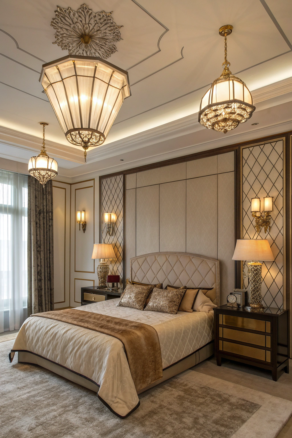 PinAdd a touch of elegance to your Art Deco bedroom with vintage lighting fixtures that serve as both functional and decorative elements. These pieces can truly elevate your space:
