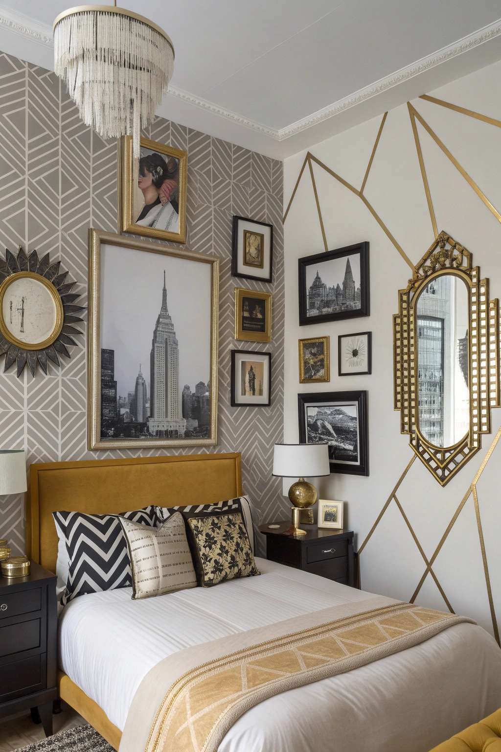 PinCreating a well-curated gallery wall can elevate your Art Deco bedroom's aesthetic, making it feel more personalized and dynamic. Think about mixing various elements for an intriguing visual effect. Consider adding: