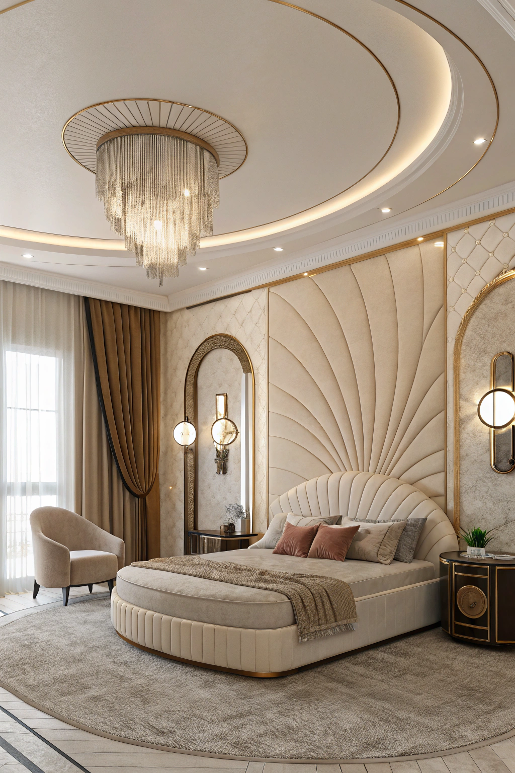 PinEmbrace the allure of curved lines and shapes to bring a sense of fluidity and softness to your Art Deco bedroom. Incorporate these elements into your design for an inviting atmosphere: