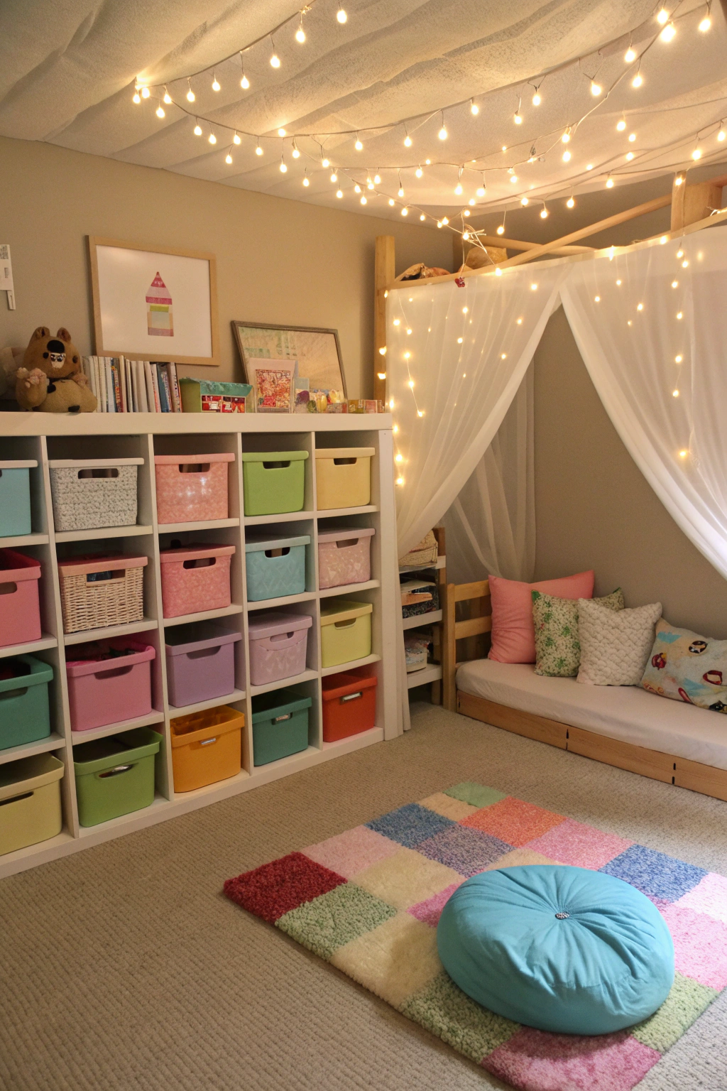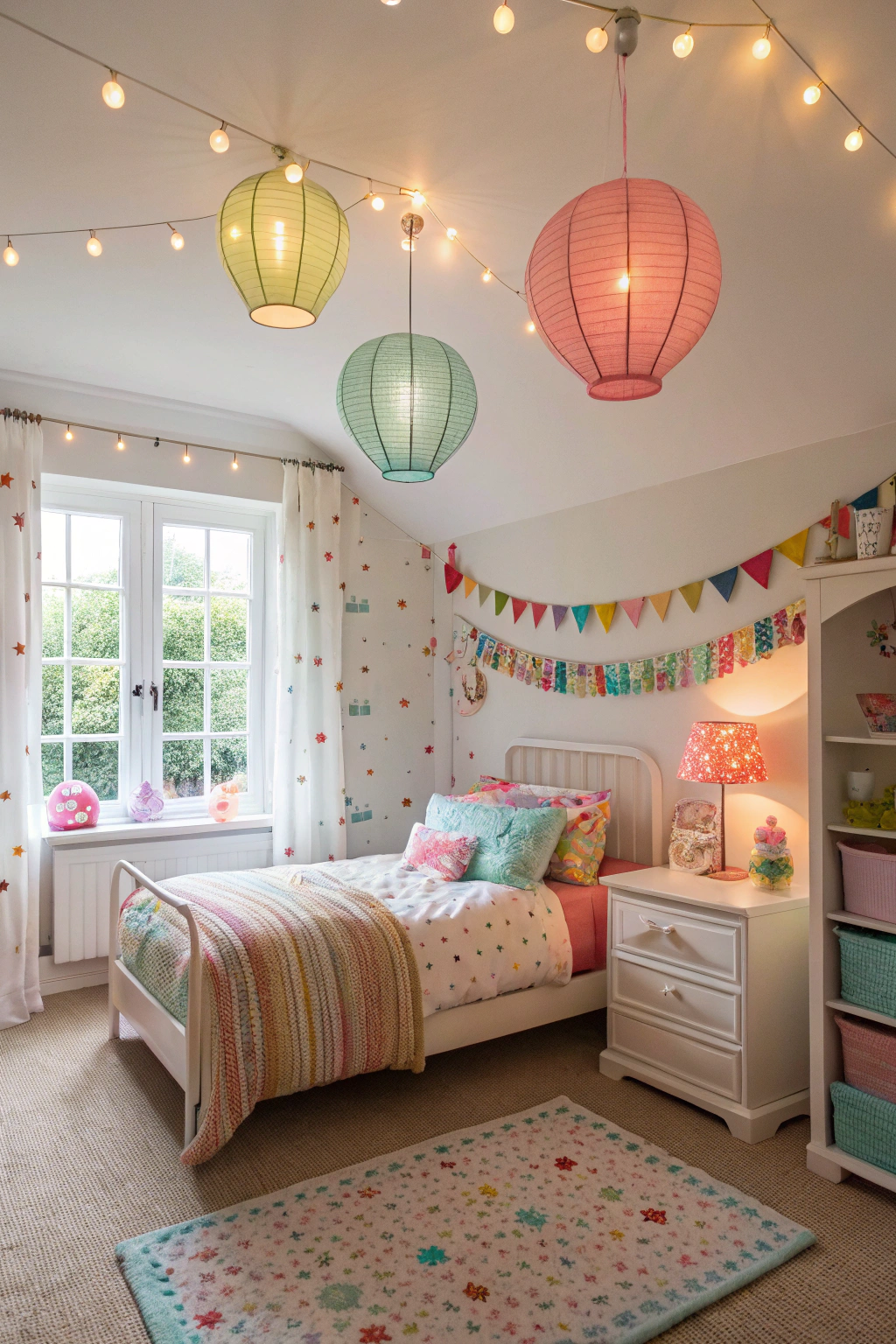 PinBright lighting can transform a child's room into a vibrant and inviting space. Consider using colorful pendant lights or whimsical floor lamps to add character. Install dimmable LED bulbs for adjustable brightness during playtime or bedtime. String fairy lights around the bed or window for a magical touch. Don't forget bedside lamps for nighttime reading! Bright lighting can spark creativity and joy.