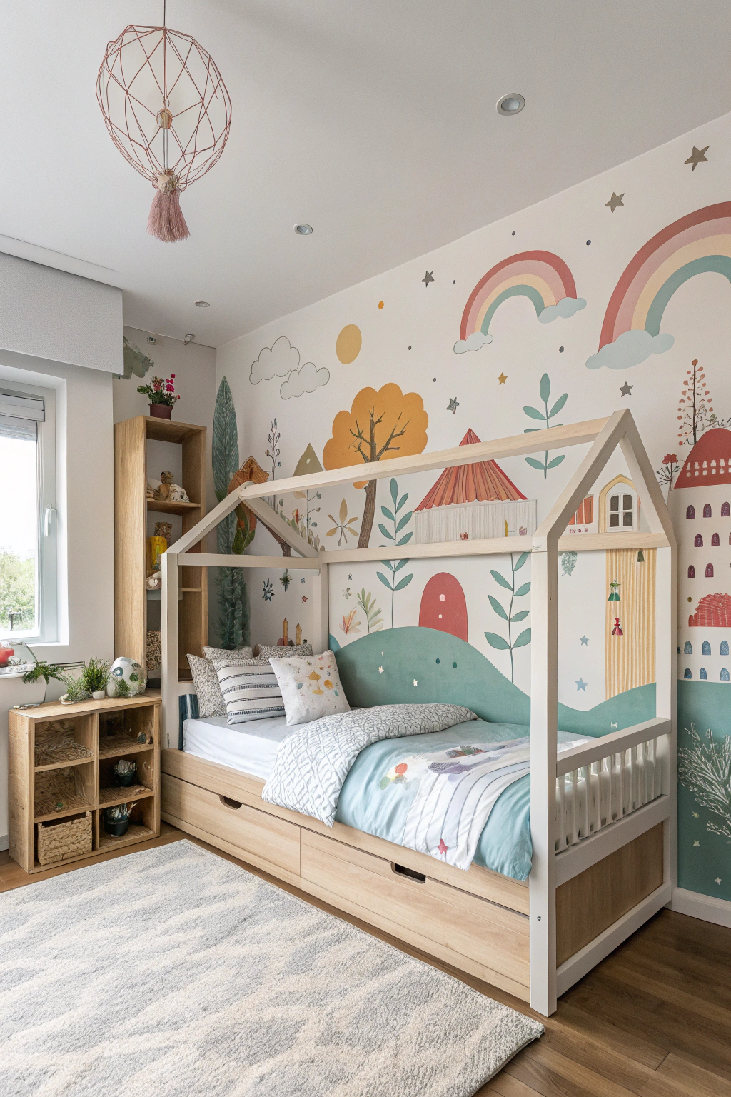 PinColorful wall murals can set the backdrop for imaginative bed designs that elevate your child's sleep space. You can create a dreamlike atmosphere with beds that double as play areas. Consider these ideas: