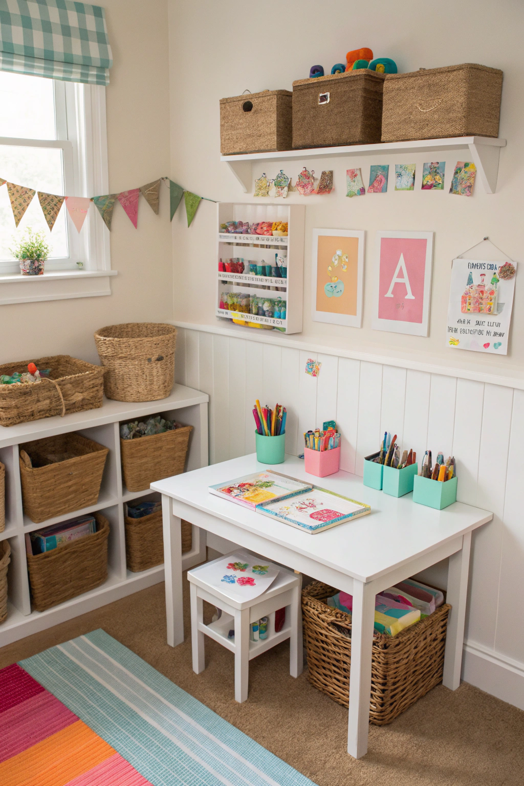 PinCreating a DIY craft station in your child's room invites creativity and self-expression. Set up a small table or corner with various supplies like colored paper, markers, scissors, and glue. Use baskets for organization and display finished projects to inspire more ideas. Encourage your child to explore different crafts, from painting to scrapbooking, making this space a hub of imagination and fun.
