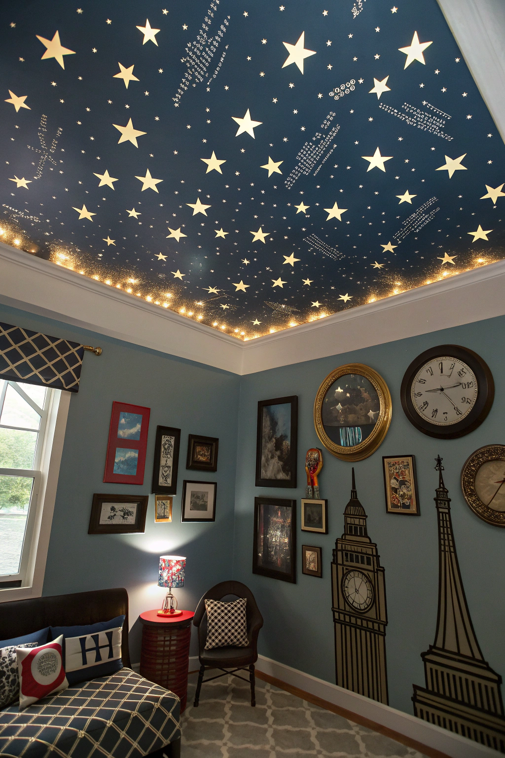 PinWhile a child's imagination knows no bounds, a magical night sky ceiling can transport them to a world of wonder every time they look up. You can easily create a celestial effect using glow-in-the-dark paint or adhesive stars. Pair it with soft, ambient lighting for an enchanting atmosphere. This transformation not only sparks creativity but also makes bedtime an adventurous journey among the stars.