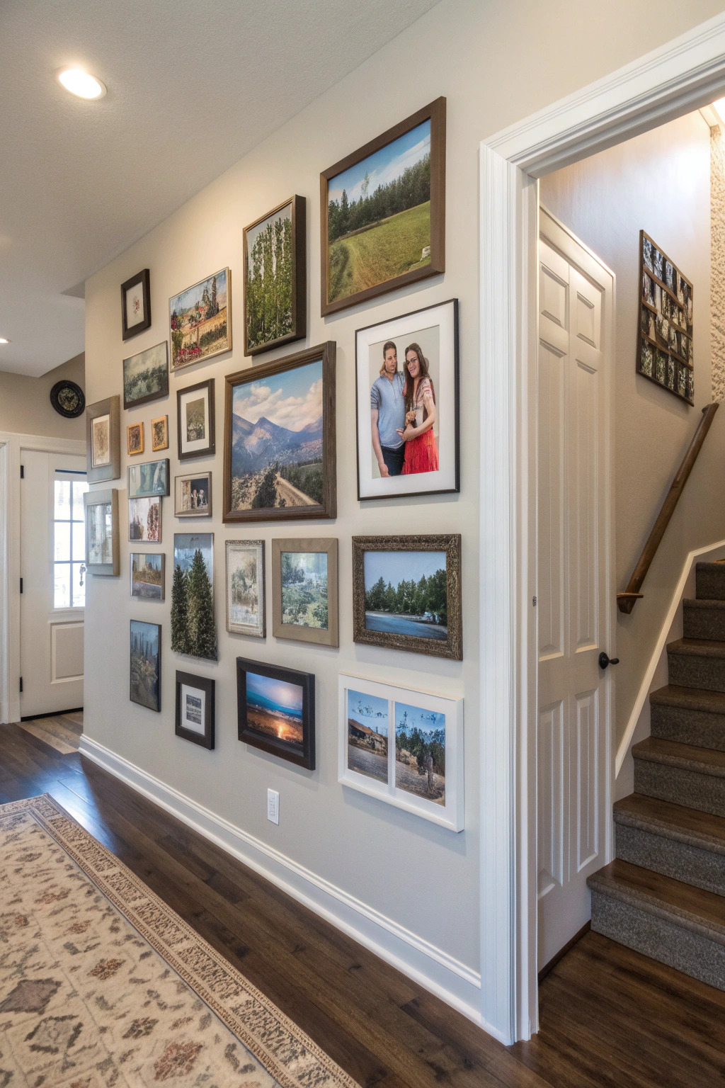 PinTransform your entryway into a personal gallery by creating a gallery wall that showcases your favorite art, photos, and mementos. Consider including: