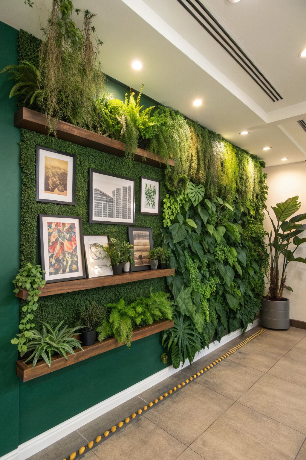 - Combine plant pots with wall-mounted shelves for dynamic display.