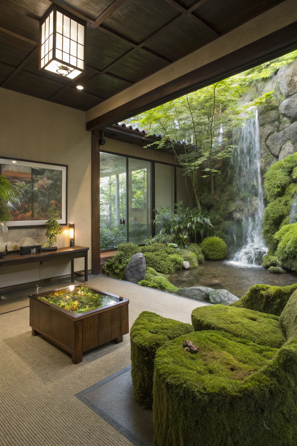 - Wall-mounted waterfalls save space while providing a tranquil backdrop.