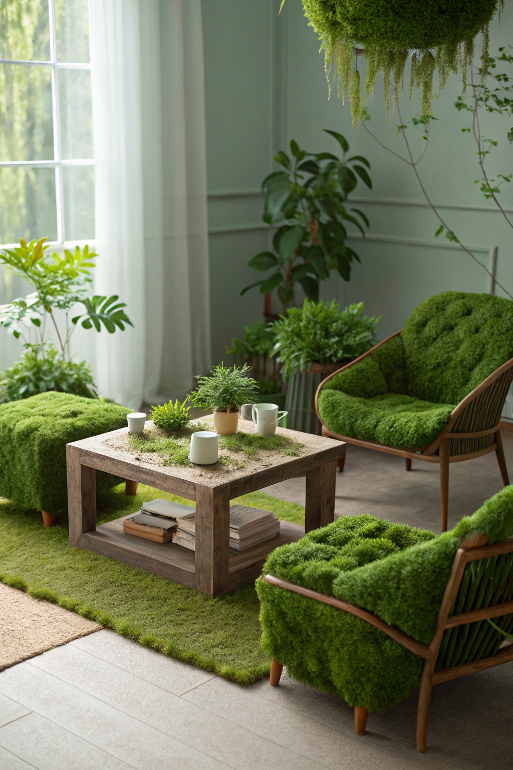 PinMoss-covered furniture can set a soothing tone in your green room, but adding indoor water features elevates that serenity even further. Consider these options: