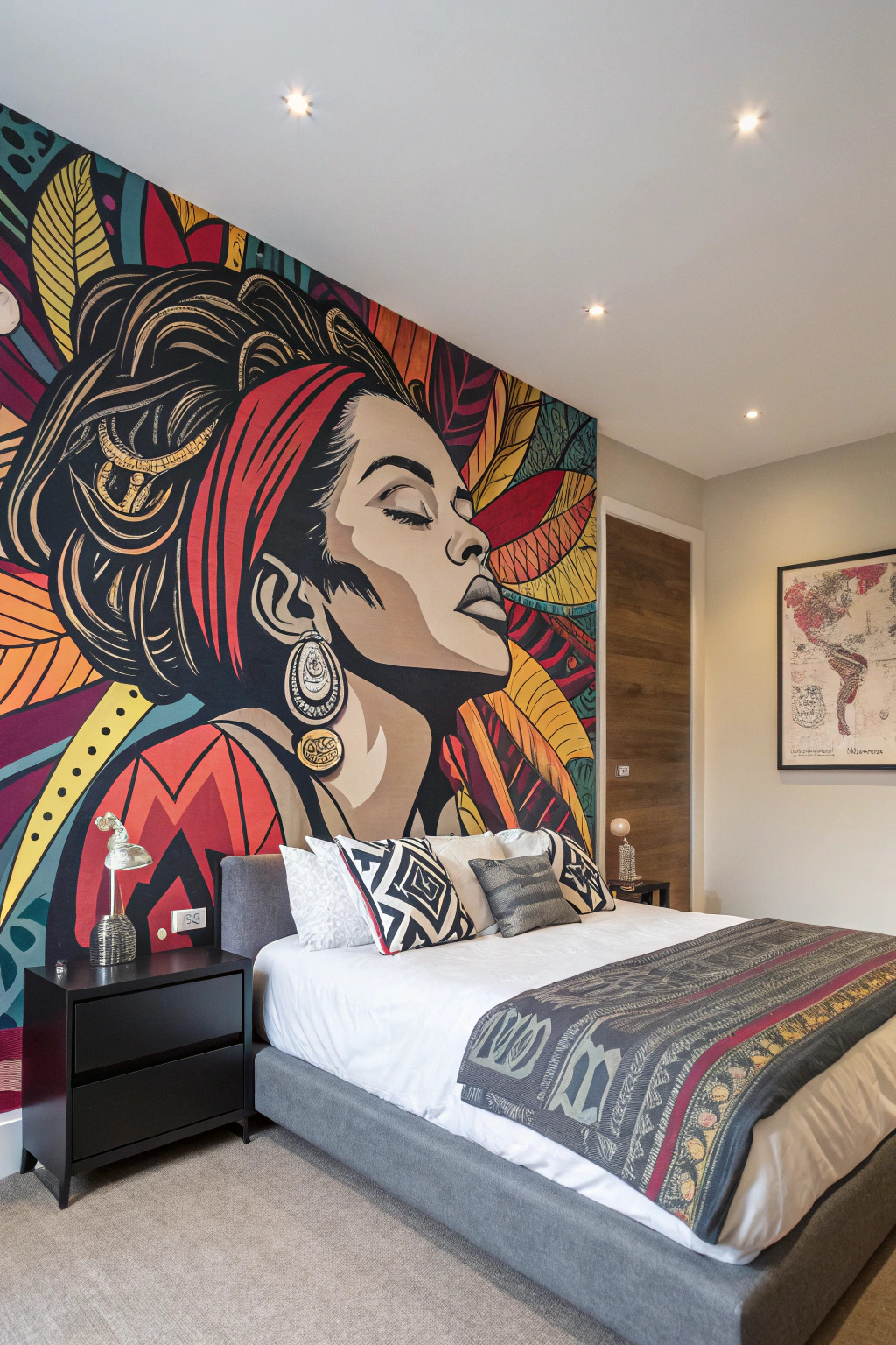 PinA striking piece of wall art can instantly elevate your bedroom and become a focal point that draws the eye. Choose oversized prints or dynamic murals that reflect your personality and style. Vibrant colors, intriguing patterns, or abstract designs can create a sense of drama and richness. Hang art at eye level to make the most impact and inspire conversation. Let your walls tell your story!