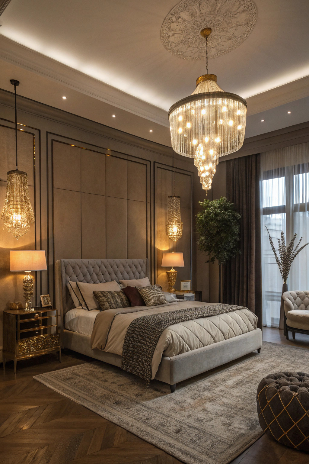 PinMaximalist furniture creates a striking foundation for your bedroom, but don't overlook the power of lighting to elevate the atmosphere. Use oversized pendant lights to draw the eye and create drama. Incorporate varied sources like floor lamps or fairy lights for warmth, too. Layering your lighting not only enhances the aesthetic but also transforms the space into a cozy, inviting retreat.