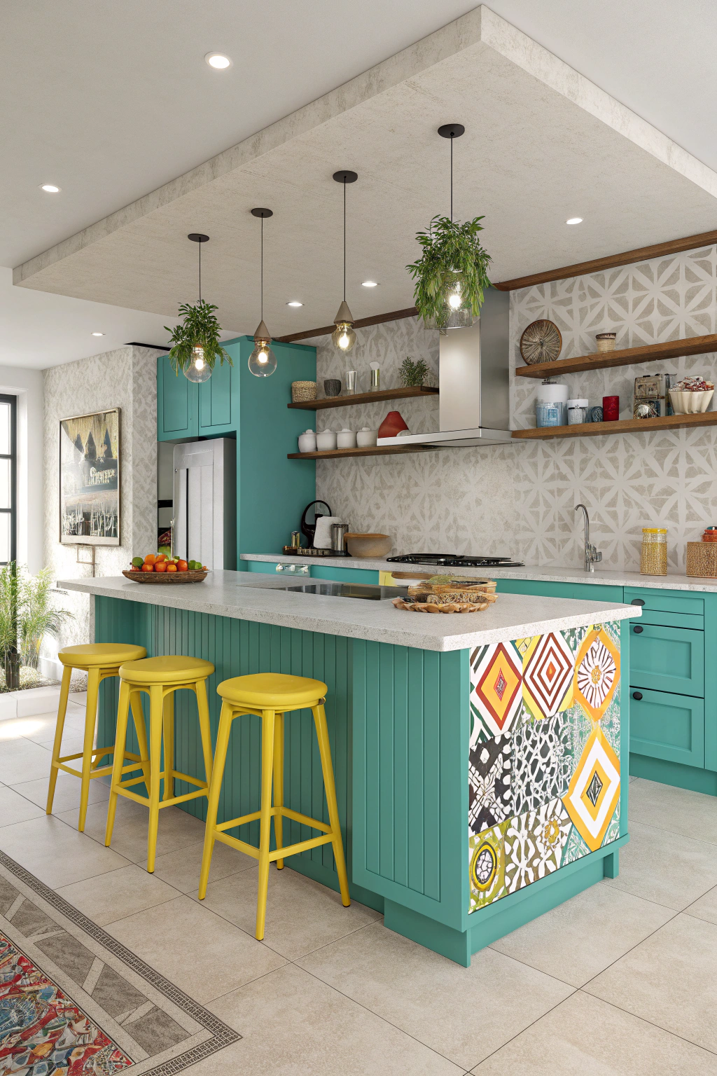- Incorporate unique materials like painted wood or patterned tiles.