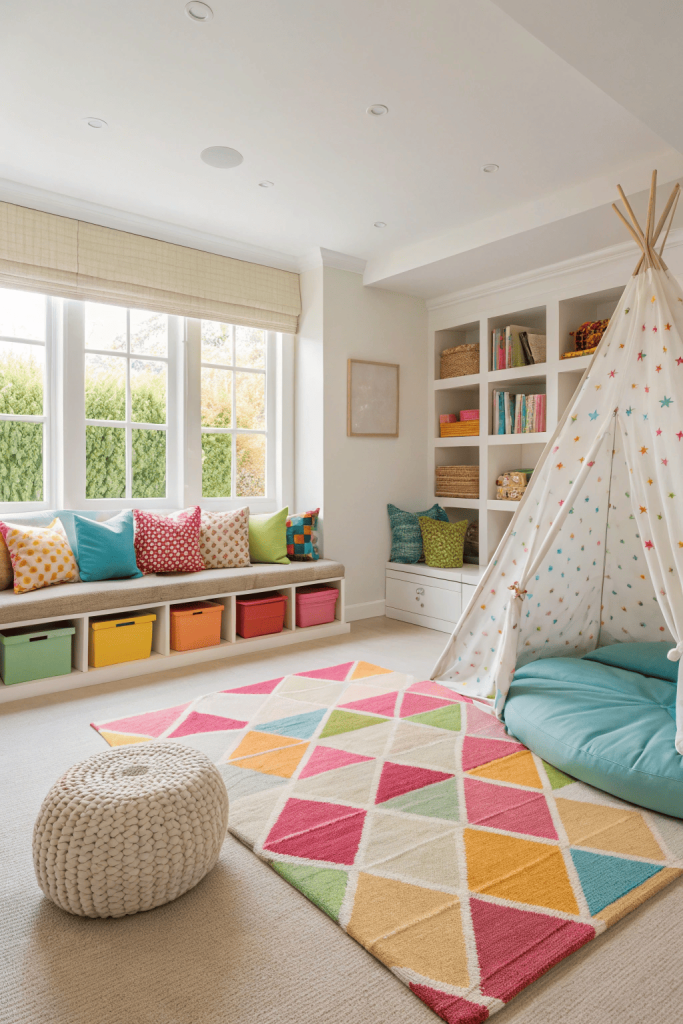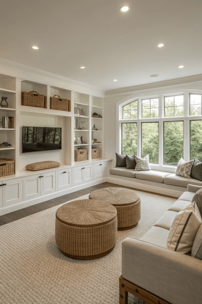 Creating a playful kids' area in the family room adds a sense of joy and imagination that every child craves. Incorporate vibrant colors, soft rugs, and multi-functional furniture to encourage creativity. Add fun storage solutions for toys and games, making clean-up easy. Designate a cozy corner with cushions or a small tent where kids can read and explore their imagination freely.