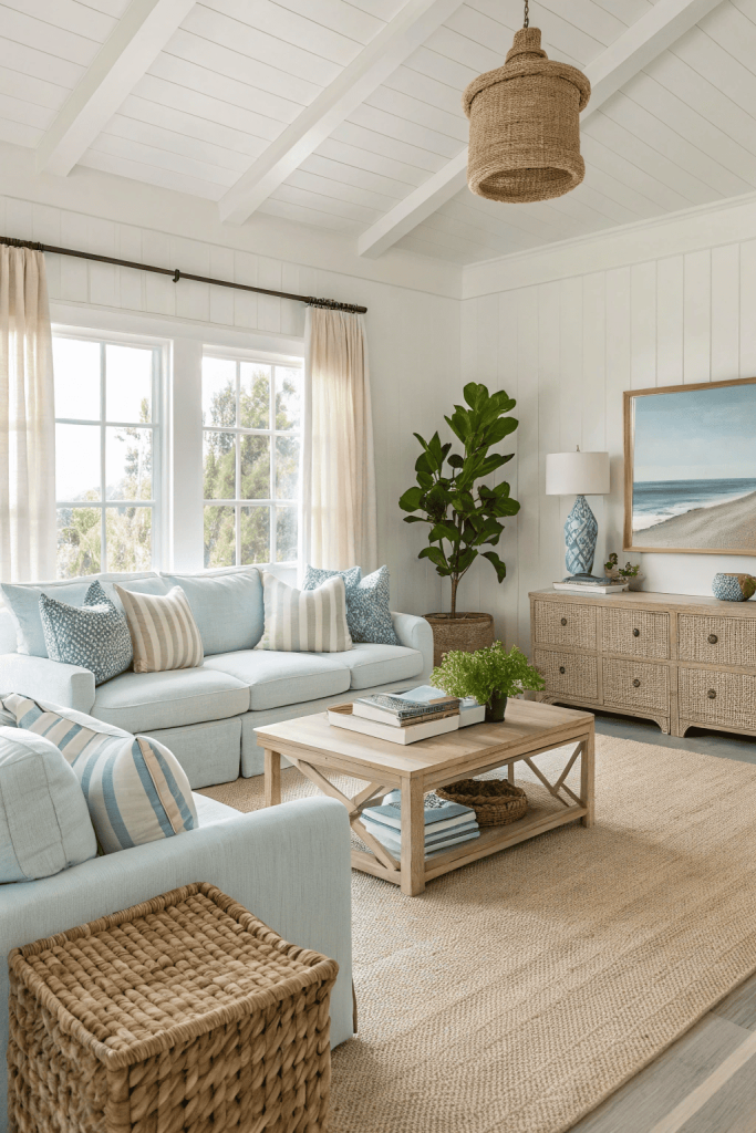Creating inviting coastal vibes in your family room can transform the space into a serene and rejuvenating retreat. You'll feel the warmth of summer every day. To achieve this cozy atmosphere, consider incorporating: