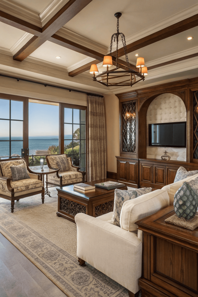 Shifting from a breezy coastal aesthetic to an elegant traditional feel can bring a sense of timeless sophistication to your family room. Opt for rich wood finishes, luxurious fabrics, and classic furniture silhouettes. Incorporate statement lighting and ornate details to enhance the refined atmosphere. Layer colors and textures to create depth, ensuring your space feels both inviting and polished, showcasing your unique style.
