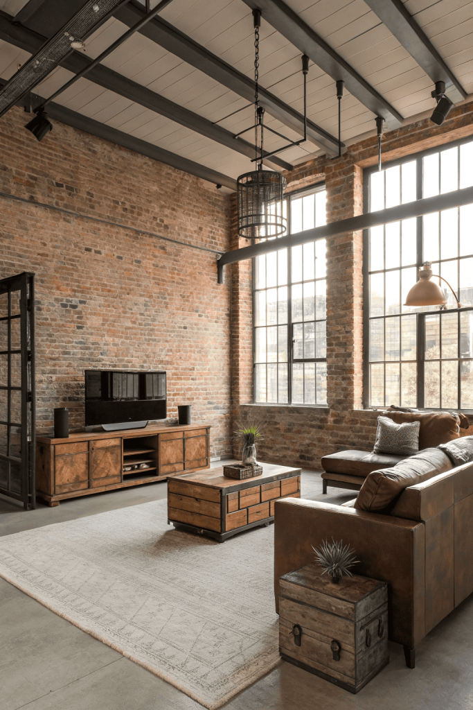 The chic industrial loft style seamlessly combines raw, urban elements with modern comforts, creating a unique and stylish family room. You can achieve this look using exposed brick walls, metal accents, and distressed wood furniture. Open layouts work best, allowing natural light to flow in. Incorporate statement lighting and minimalist decor for an inviting atmosphere that feels both edgy and cozy.