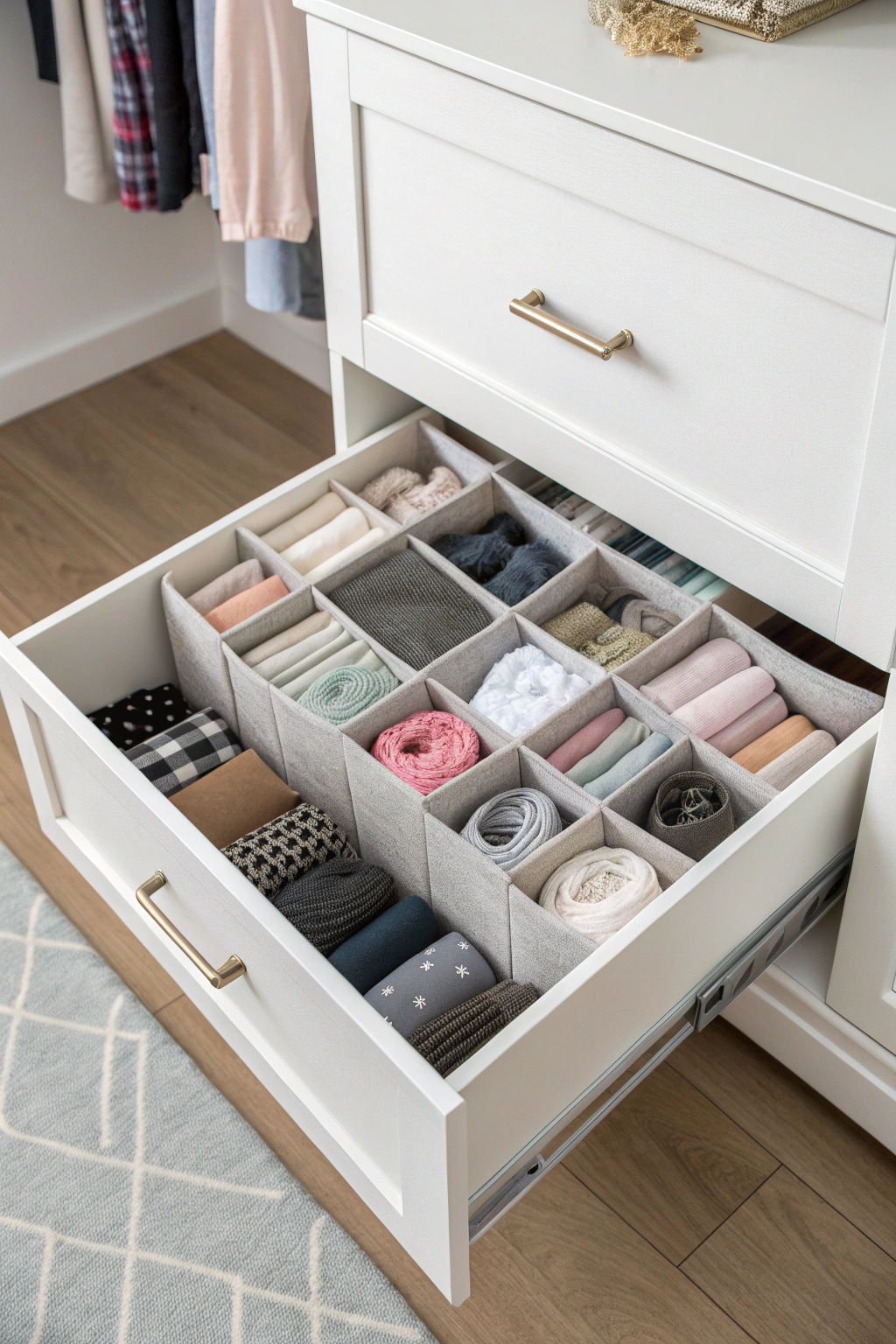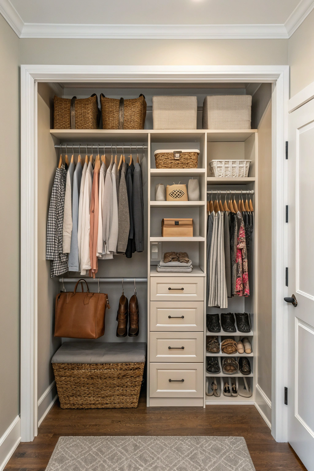 PinBy incorporating drawer dividers, you can instantly enhance organization within your small closet. These simple tools help separate items like socks, accessories, and undergarments, making it easier to find what you need quickly. You won't waste time rummaging through unorganized drawers anymore. Choose adjustable dividers to customize your space and maximize your closet's potential, ensuring everything has its designated spot.