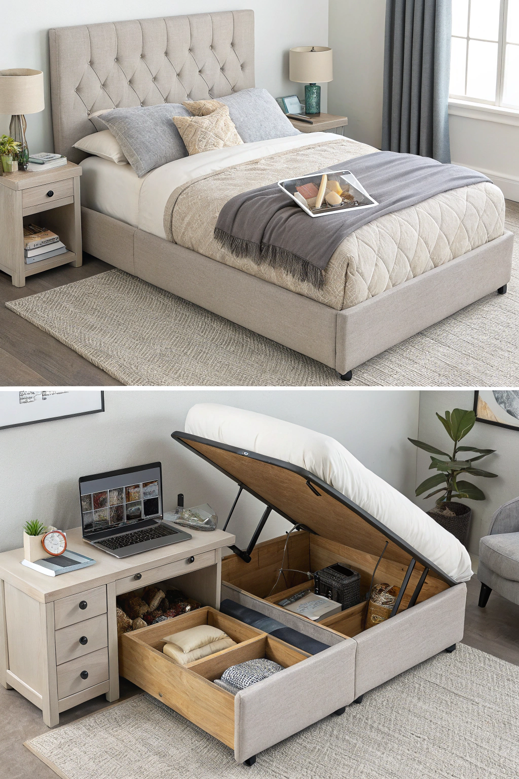 PinChoosing multi-purpose furniture can be a game changer in small rooms. Look for beds with storage drawers, ottomans that open up for blankets, or desks that double as nightstands. These pieces maximize your space while keeping it stylish. By integrating multifunctional items, you'll create a more organized environment that meets all your needs without crowding your tiny room.