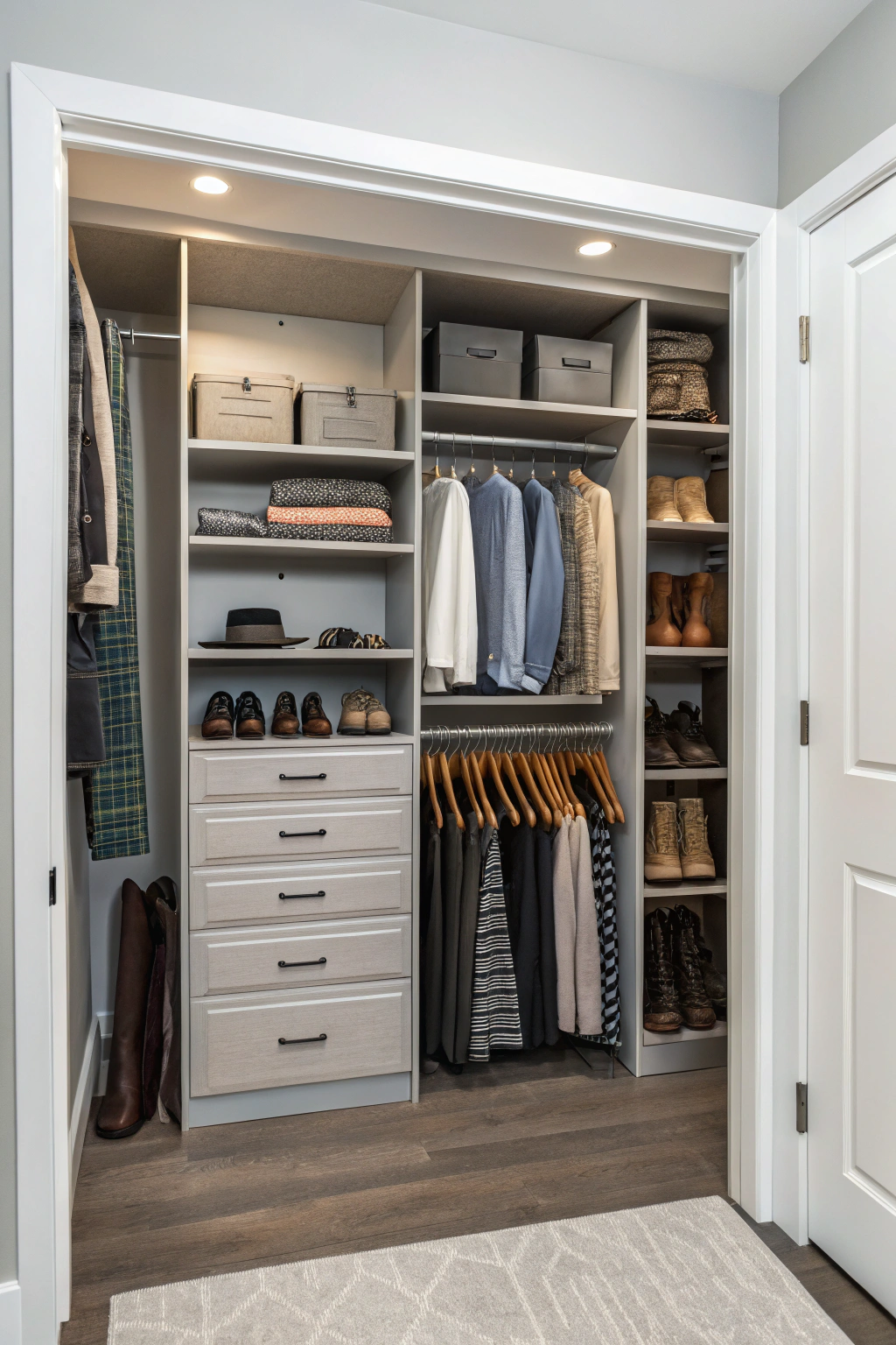 PinIf you're looking to maximize storage in a small room, a closet system might be the perfect solution. These systems are customizable and can make a big difference. Consider the following: