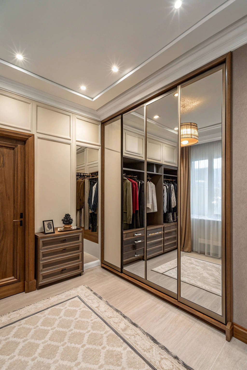 PinIncorporating mirrors into your small room's closet design can create an illusion of space and enhance the overall aesthetic. Strategically place mirrored panels or sliding doors to reflect light and visually expand the area. You'll find that a well-placed mirror not only serves a functional purpose but also adds depth, making your closet feel larger and more inviting.