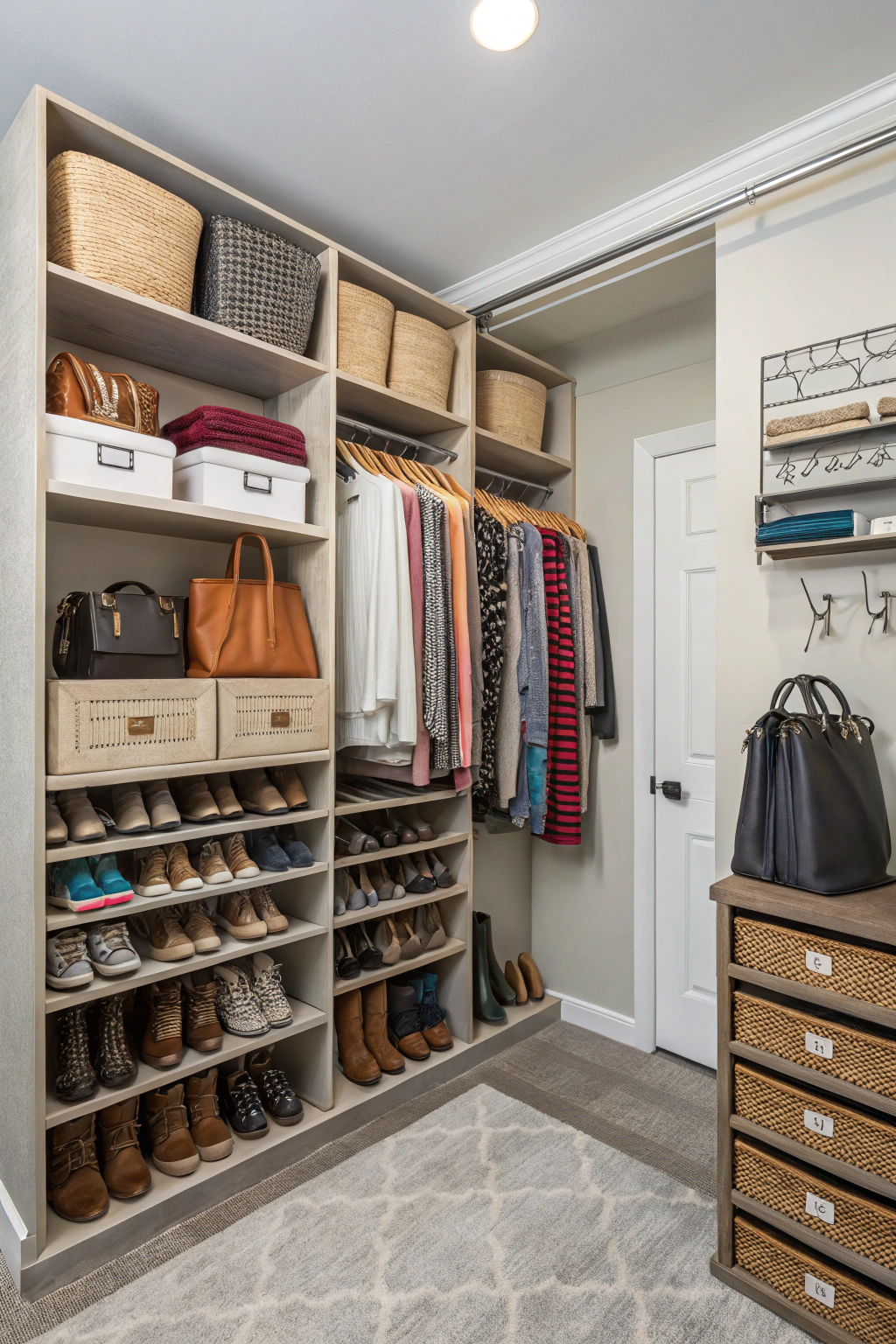 PinMaximize your closet's potential by utilizing vertical space! Install shelving units that reach the ceiling, giving you extra storage for shoes, bags, or seasonal items. Consider using hanging organizers for accessories to keep them visible and accessible. Don't forget about wall-mounted hooks or pegboards for frequently used items. By going vertical, you'll create a more organized and spacious closet.