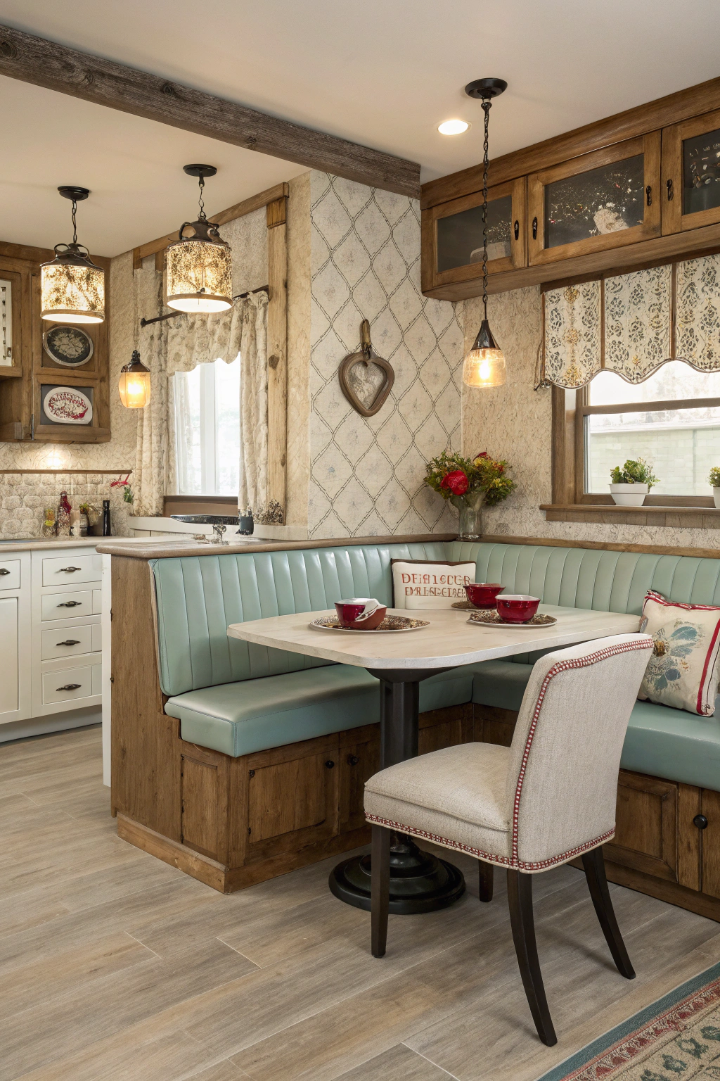 PinFor those who cherish the charm of bygone eras, vintage-inspired banquette seating can transform your kitchen into a nostalgic retreat. With the right touches, you'll create a cozy atmosphere reminiscent of classic diners. Consider incorporating: