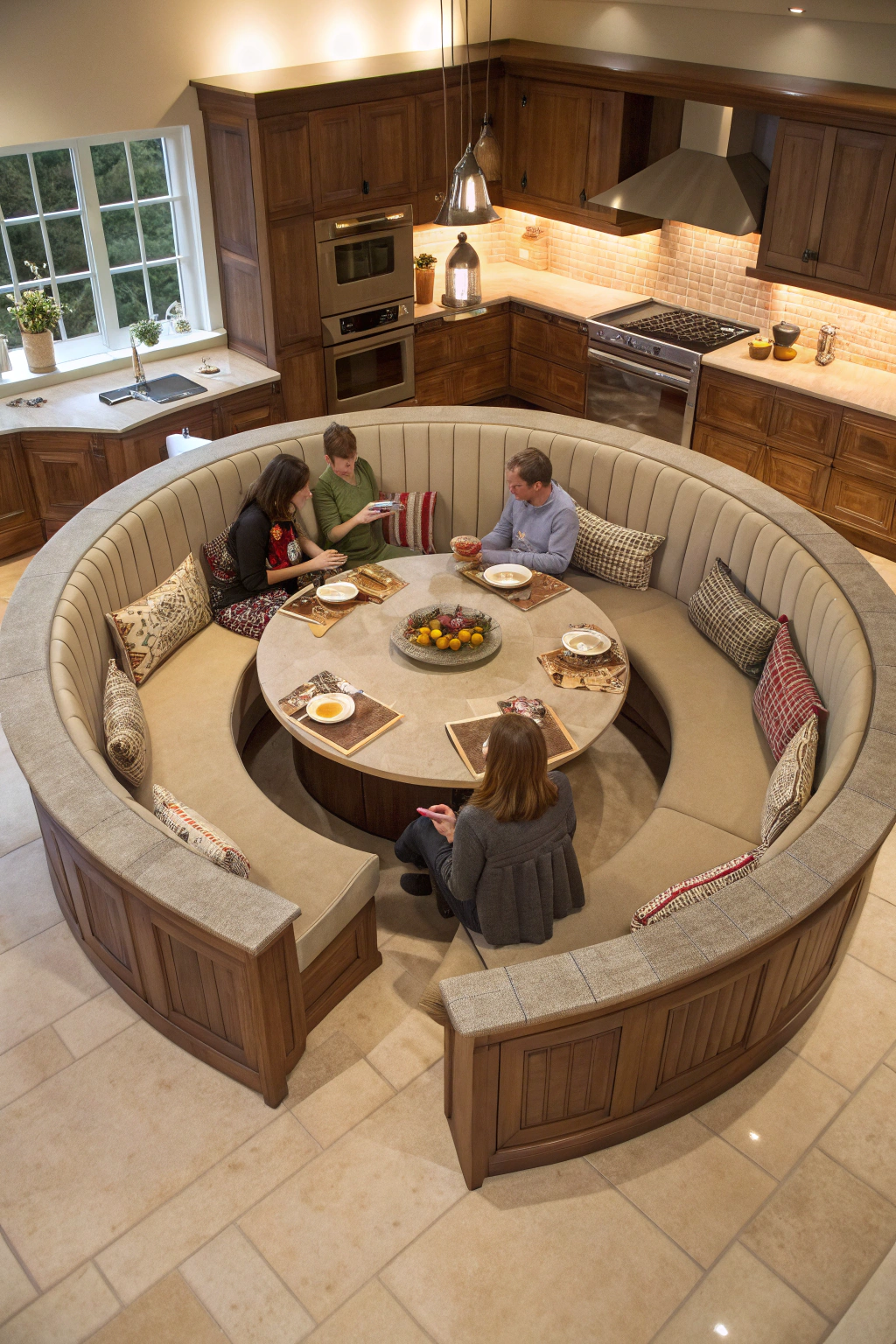 PinIf you're looking for a unique seating option that stands out, circular banquette seating offers a perfect blend of style and comfort. This design creates an inviting atmosphere, allowing guests to gather around and engage effortlessly. You can customize it with cushions or upholstery that match your kitchen's decor. Plus, it maximizes space, making it ideal for both small and large kitchens.