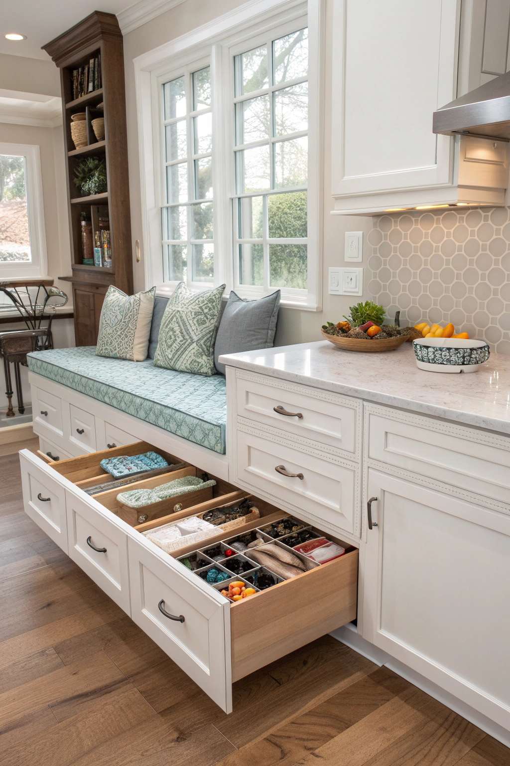 PinMaximizing both style and functionality, a built-in bench with storage can be a fantastic addition to your kitchen. You can create a cozy space while cleverly hiding away items that clutter your area. Consider the following features to enhance your design: