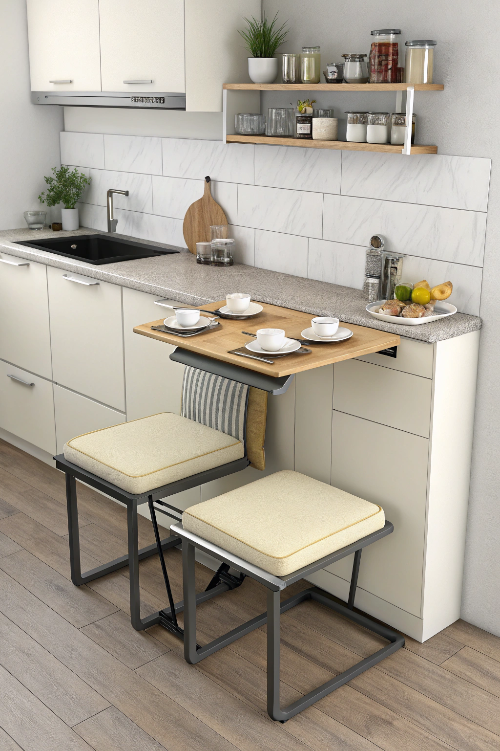 PinMaximizing space in a small kitchen brings a sense of innovation and practicality, and wall-mounted foldable seats are an excellent solution. These seats provide versatility and can be tucked away when not in use. They're perfect for casual dining or extra seating during gatherings. Consider these benefits: