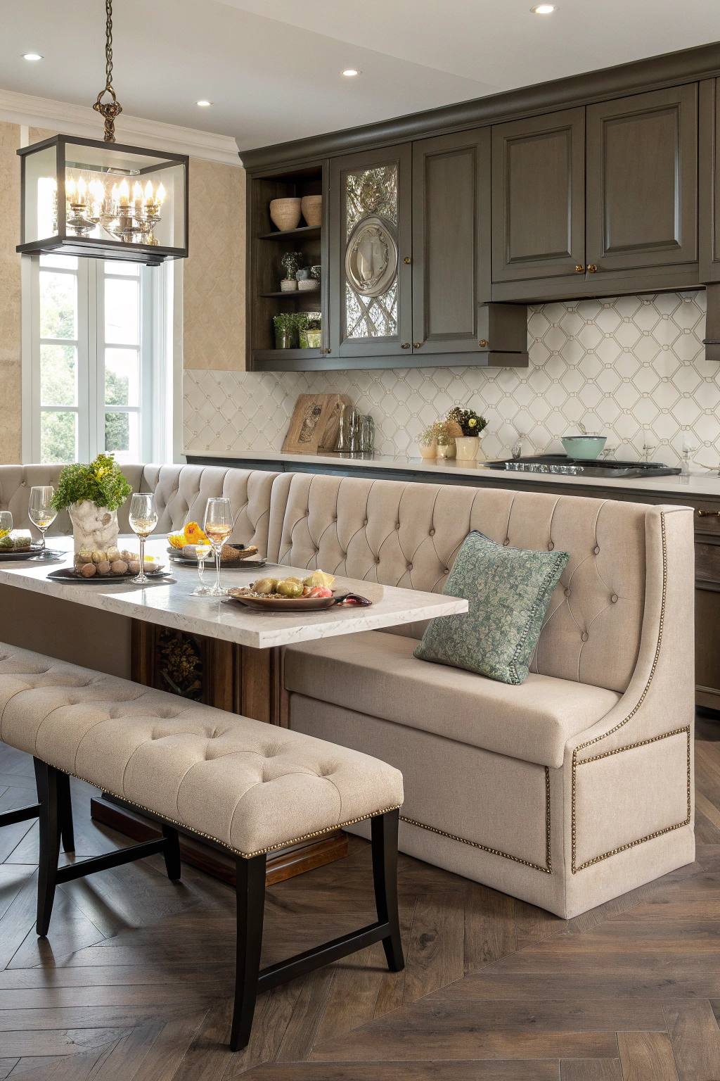 PinUpholstered banquettes with backrests often bring a touch of comfort and elegance to your kitchen space. They provide a cozy spot for meals, conversations, and relaxation. Consider these features to enhance your design: