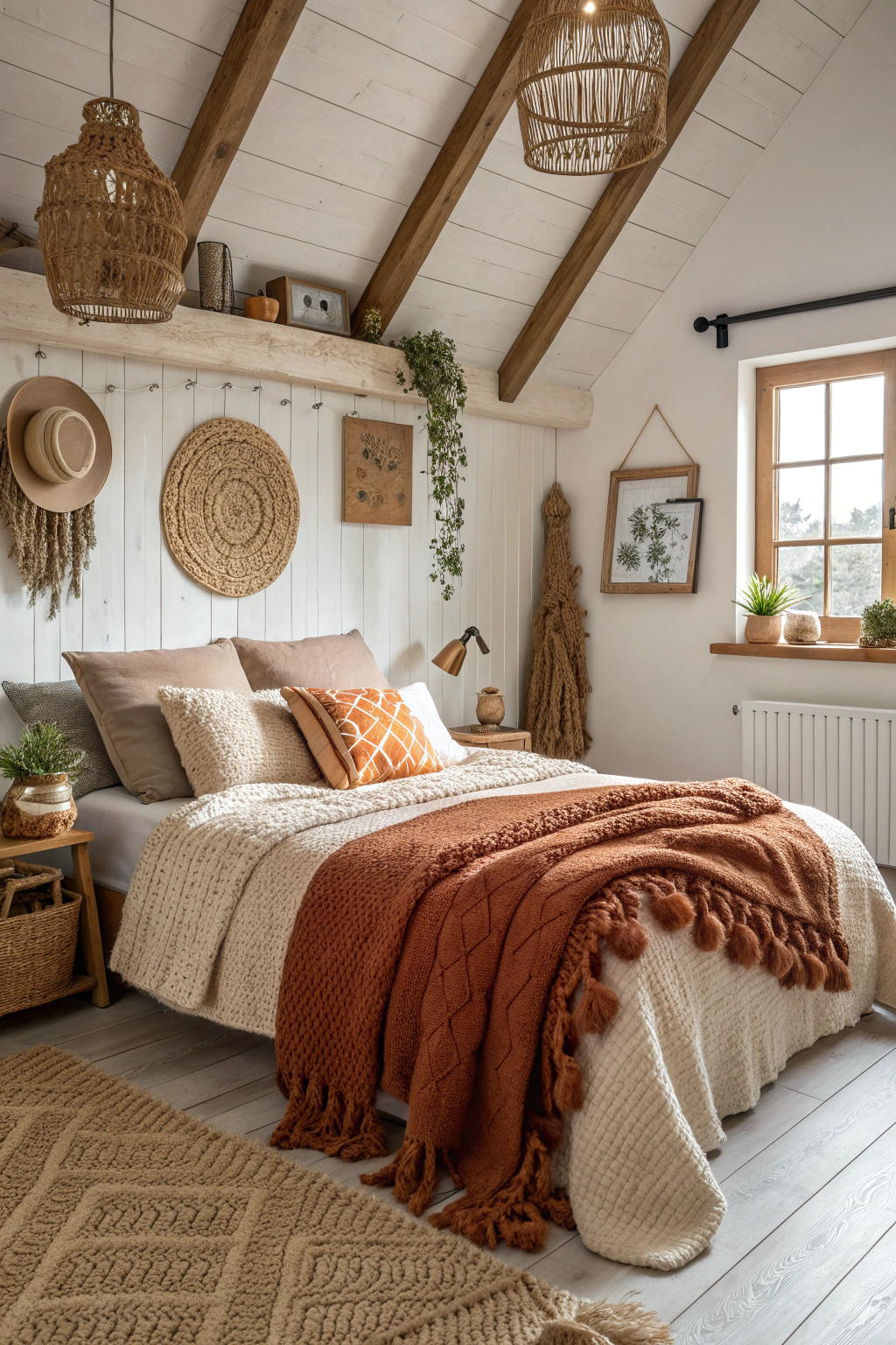 - Textured throws in warm earth tones