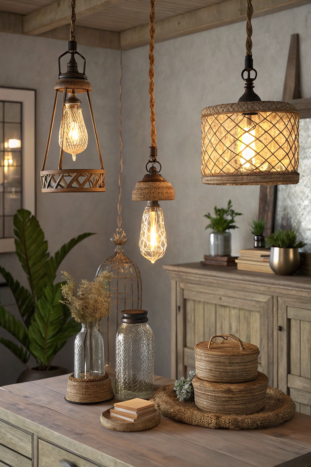 - Woven Rattan Pendants β Adds texture and warmth.