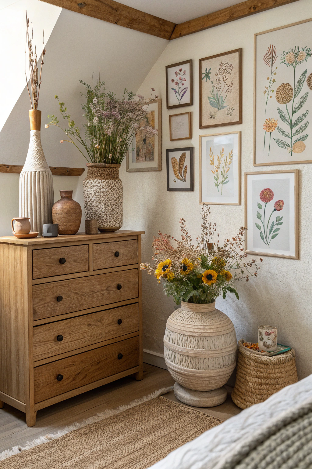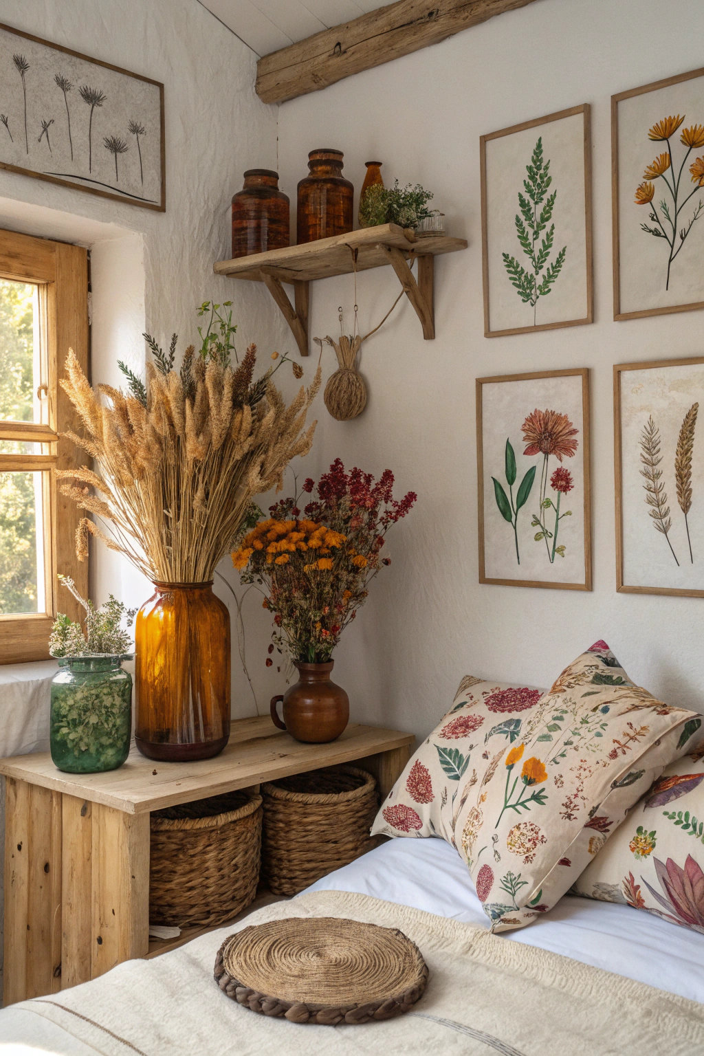 - Dried flower arrangements to bring warmth and color.