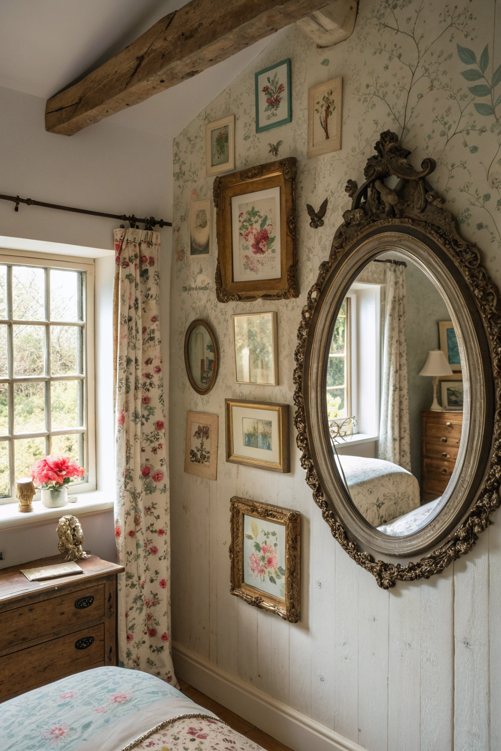 PinVintage mirrors can add an enchanting depth to your cottagecore bedroom, making the space feel larger and more inviting. Choose ornate frames or distressed finishes to enhance the whimsical aesthetic. Hang a large mirror opposite a window to reflect natural light, or cluster smaller ones on a wall for a gallery effect. This not only creates visual interest but also embodies the cozy cottagecore vibe.