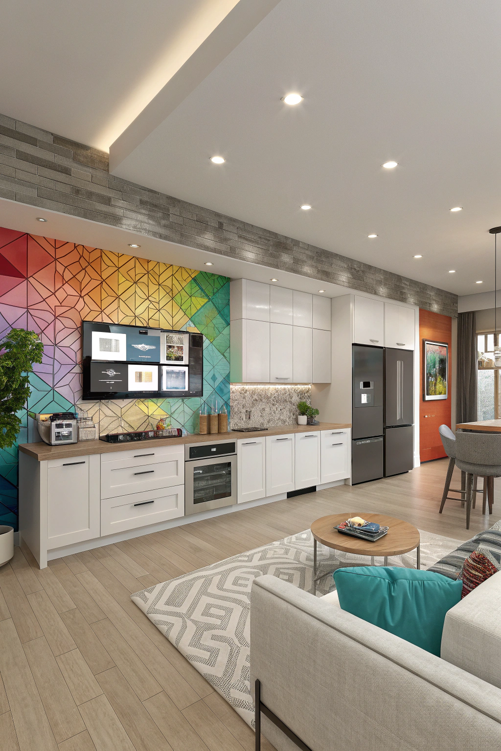 PinArtistic backsplashes add vibrancy, but integrating tech features elevates your open concept kitchen and living room to a whole new level. Imagine controlling everything at your fingertips! Consider these tech upgrades: