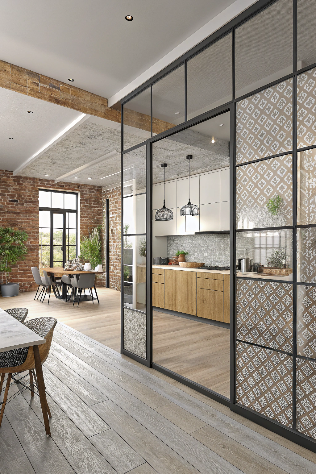 PinGlass partitions can enhance your open concept space while still allowing for creativity in your design choices. Textured wall designs can add depth and interest to your kitchen and living room. Consider these options: