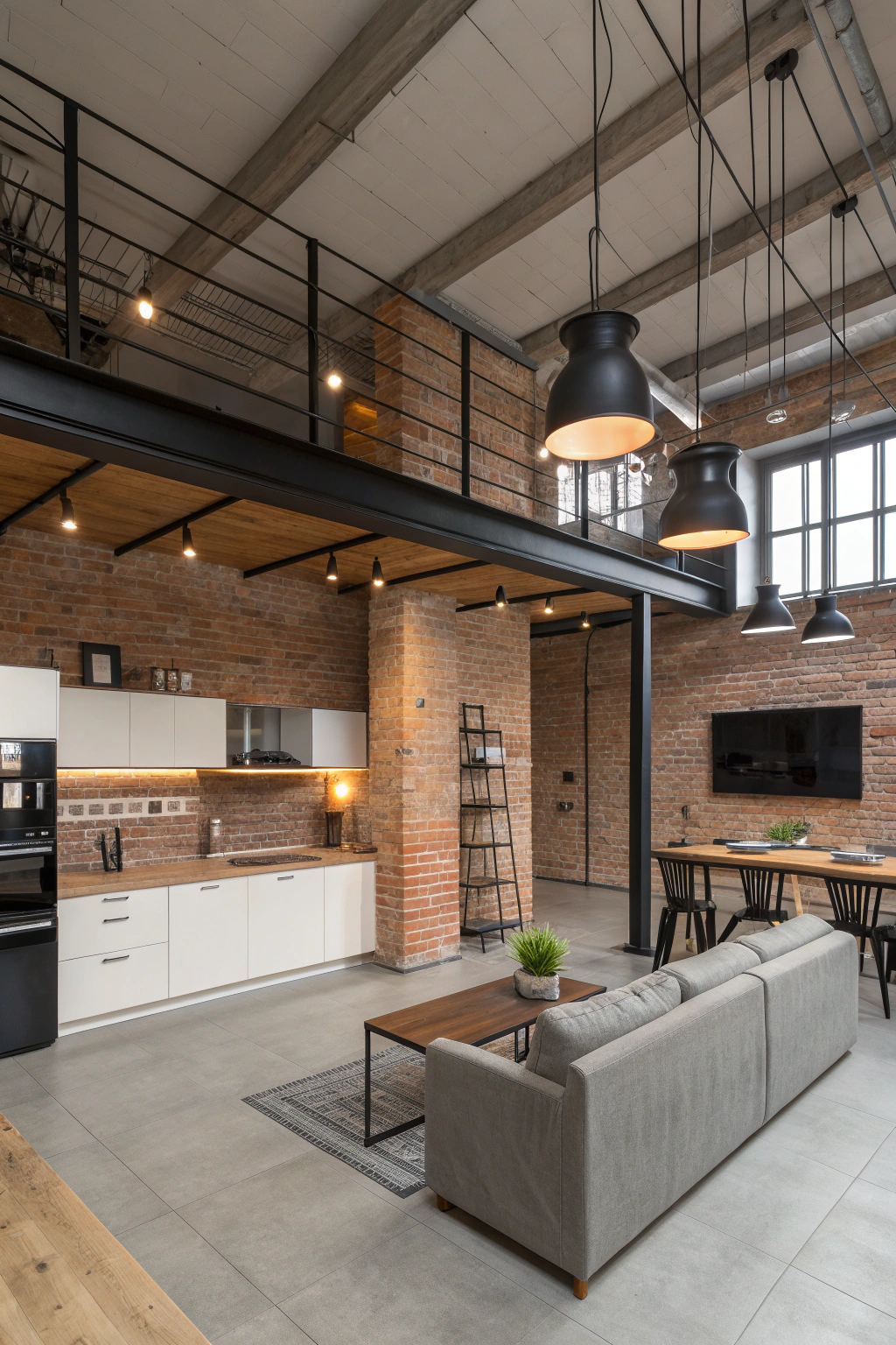 PinIf you're looking to elevate your open-concept kitchen and living room with a modern edge, chic industrial style might be the perfect fit. Embrace raw materials like exposed brick and steel beams, and opt for simple furnishings that blend functionality with aesthetics. Incorporate sleek pendant lighting and minimalistic decor to create an inviting yet edgy atmosphere that reflects your unique taste.