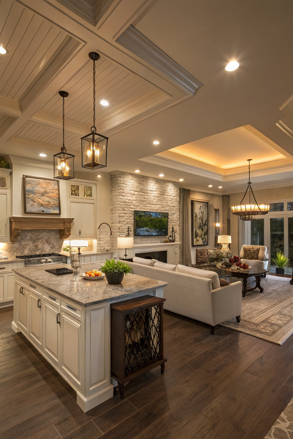 PinLayer your lighting to achieve a warm and inviting atmosphere in your open concept kitchen and living room. Combine ambient lighting, like ceiling fixtures, with task lighting for practical areas, such as countertops. Add accent lights to highlight artwork or architectural features. Consider dimmers to adjust the mood effortlessly, creating the perfect environment for cooking, dining, or entertaining with friends and family.