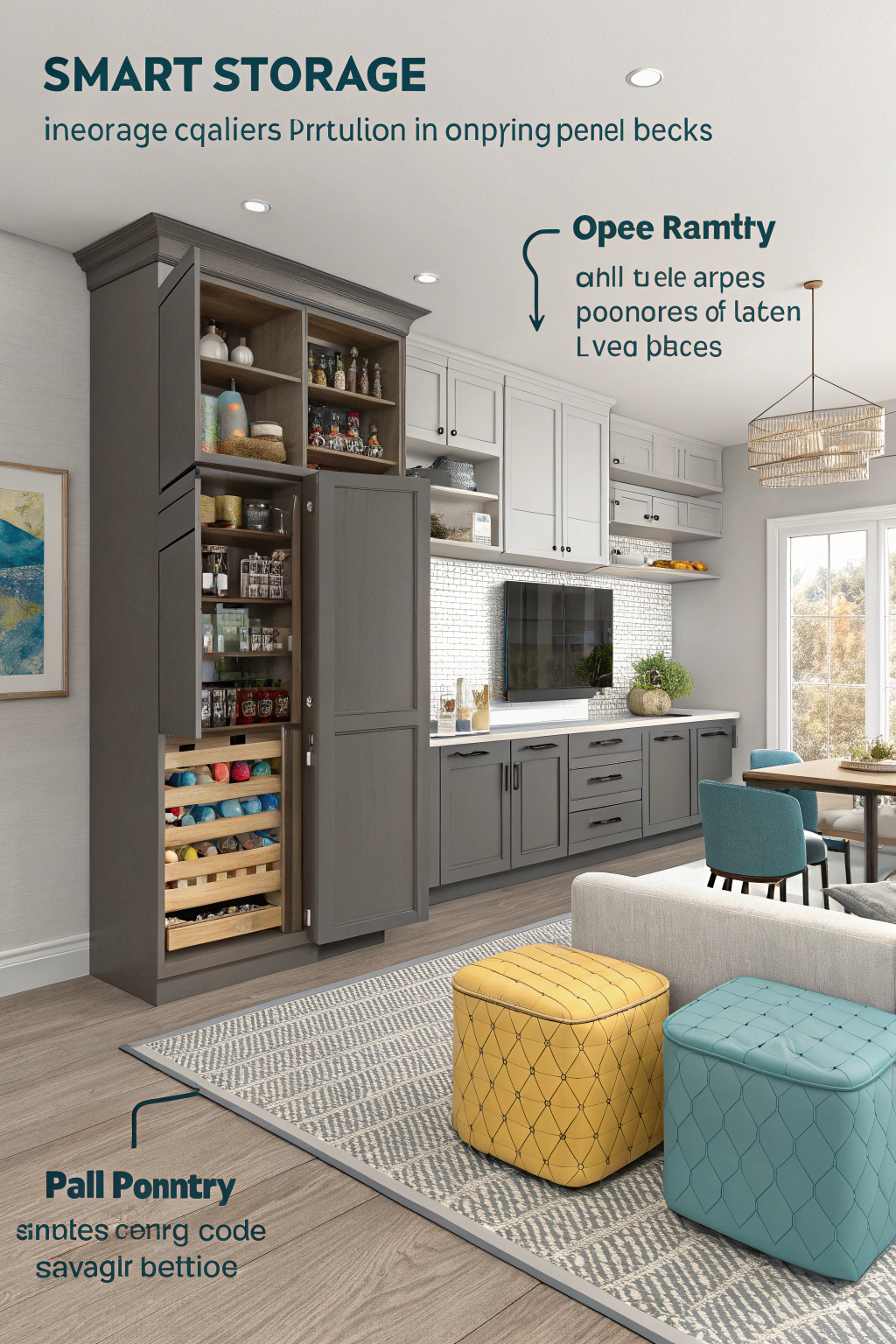 PinSmart storage innovations can transform your open concept kitchen and living room into a clutter-free haven. Consider implementing these ideas: