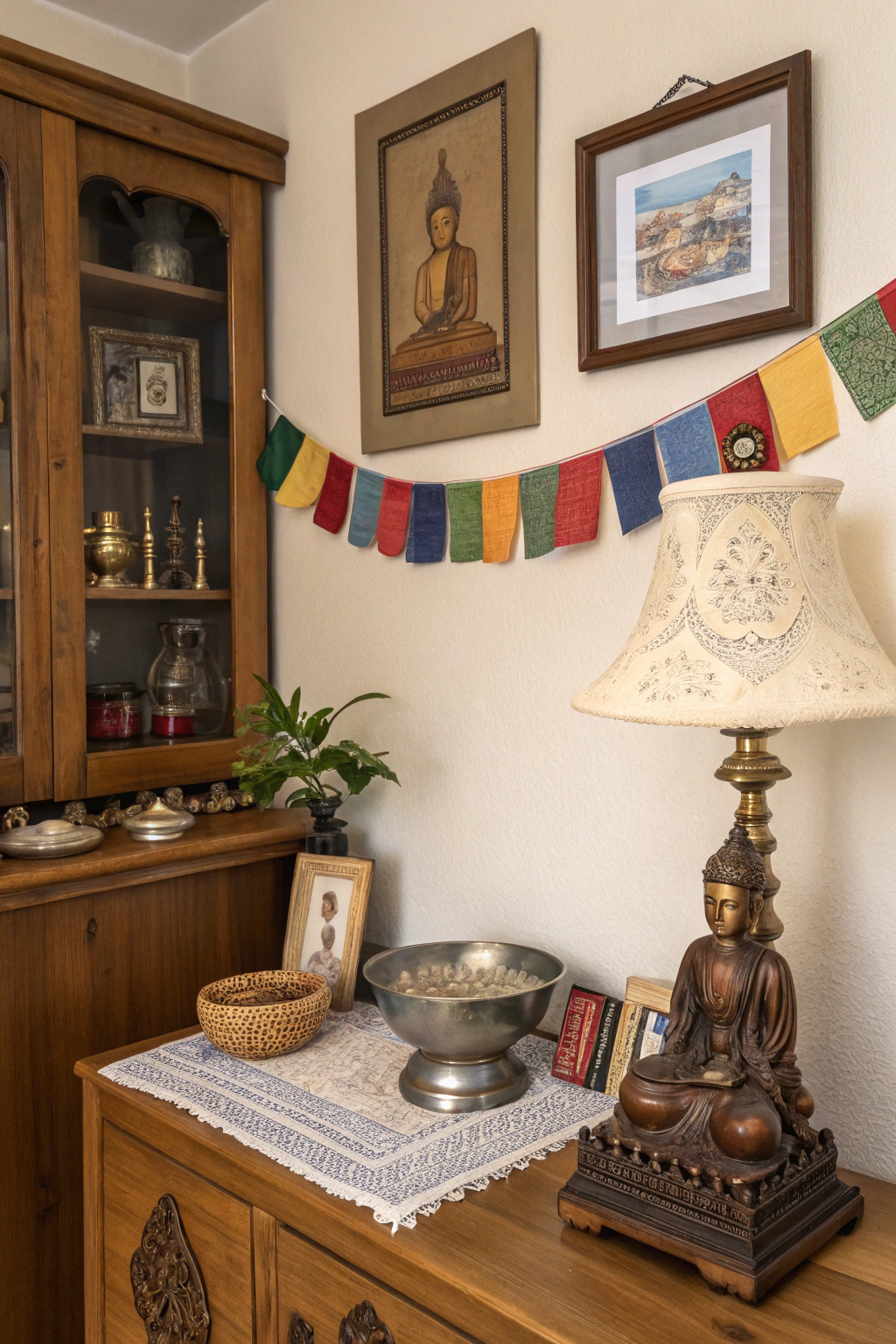 - Artwork: Hang colorful paintings or tapestries that inspire devotion and peace.