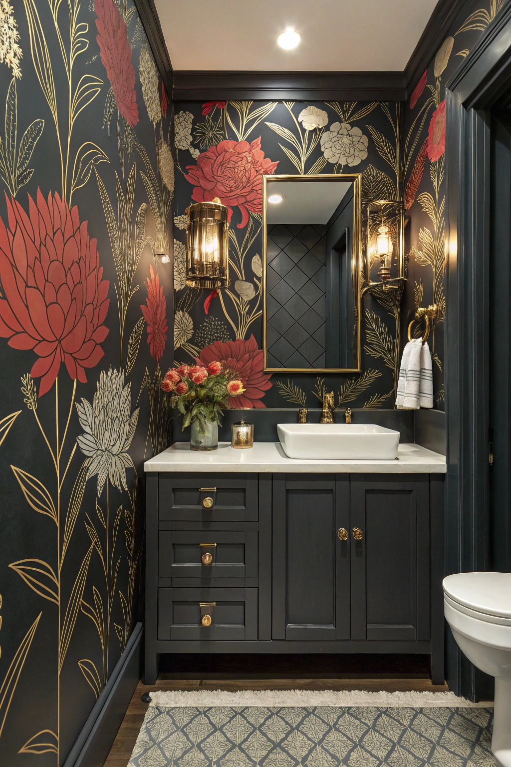 PinA striking wallpaper can completely redefine your dark bathroom, adding personality and style. Choose bold patterns, rich textures, or unique prints to create a mesmerizing focal point. Consider floral motifs or geometric designs that enhance the ambiance. Remember, the right wallpaper can transform an ordinary space into an extraordinary retreat, making every visit feel special and unique to your taste.