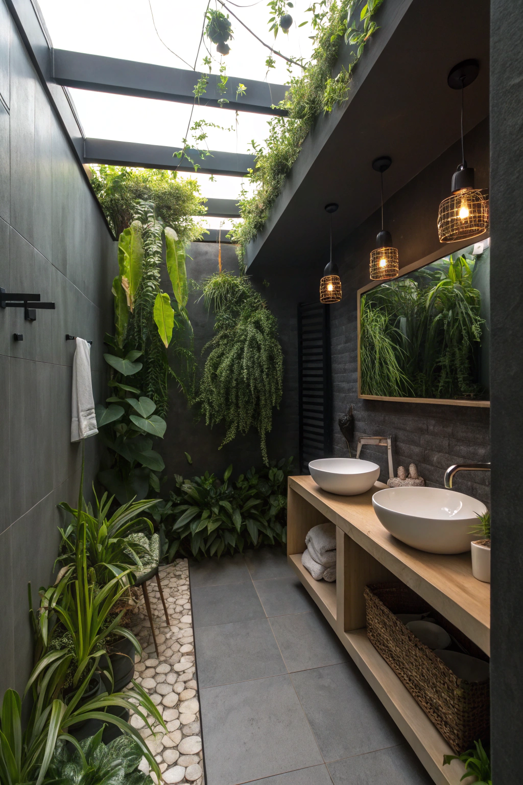 PinAdding plant life to dark spaces can transform your bathroom into a serene oasis, even with limited natural light. Choose low-light plants like snake plants, pothos, or ZZ plants that thrive in shade. Hang them from the ceiling or place them on shelves to add depth. Their lush greenery not only enhances your space but also improves air quality, creating a relaxing environment.
