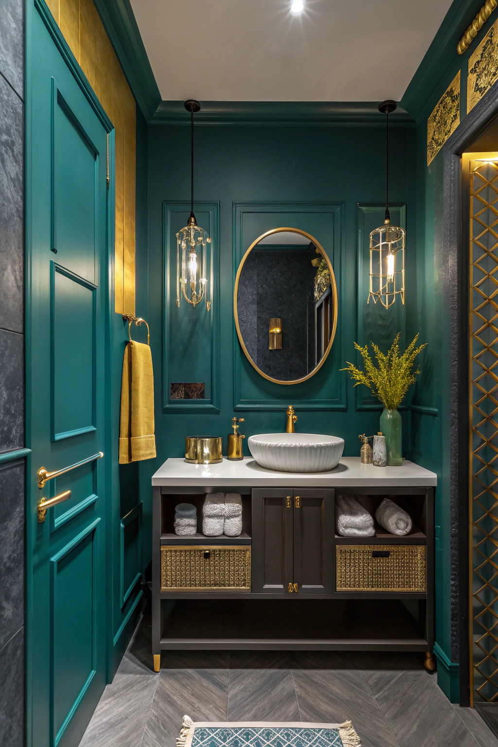 PinChoosing the right accent colors can transform your dark bathroom into a stylish retreat. Consider vibrant shades like teal, mustard yellow, or rich jewel tones that pop against darker hues. These colors can lend warmth and personality, making your space feel inviting. Don't shy away from metallic accents, either; they add a touch of glamour while enhancing the overall aesthetic.