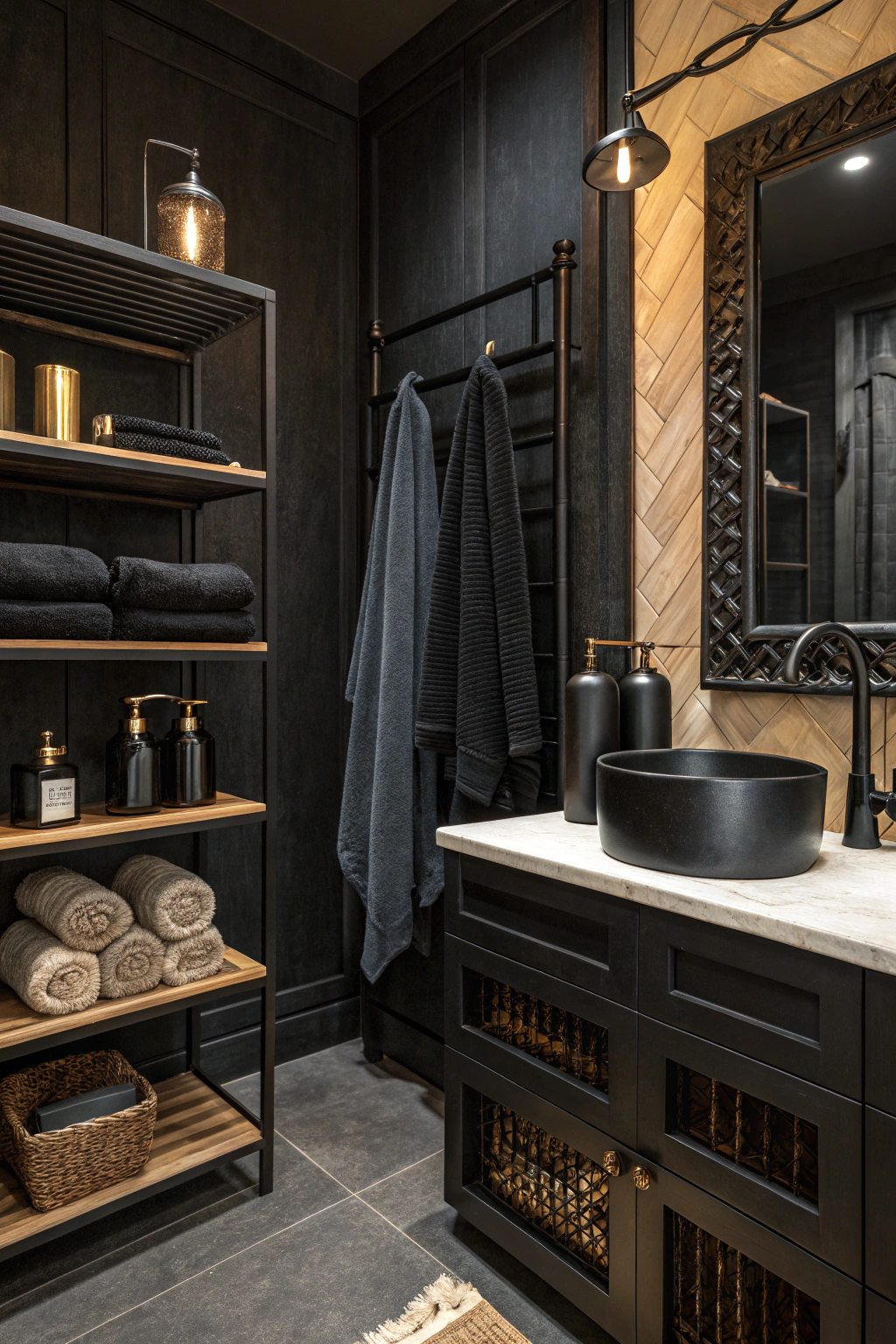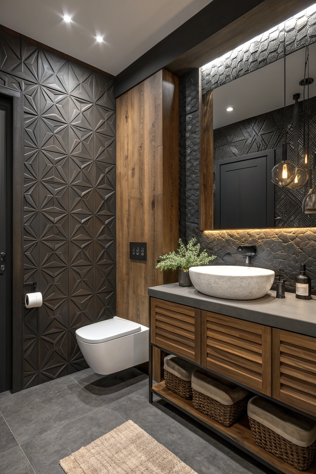 PinFor a bold twist in your dark bathroom, textured wall panels offer a striking alternative to traditional paint or tile. These panels add depth and personality, transforming your space into a stylish retreat. Choose from options like wood grain, stone finishes, or geometric designs to enhance the ambiance. With easy installation, you'll enjoy a fresh look that elevates the room's overall aesthetic.