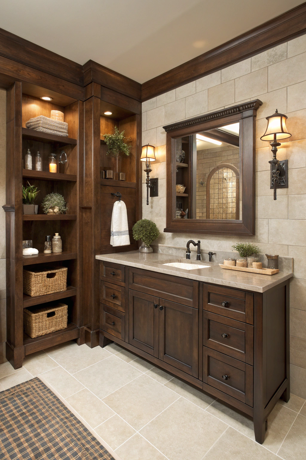 PinThere's something undeniably warm and inviting about dark wood fixtures in a bathroom. They add depth and character, creating a cozy atmosphere. Whether you opt for a dark wood vanity, shelving, or accent pieces, these fixtures can beautifully contrast with lighter tiles or walls. You'll find that the richness of dark wood elevates your space, making it feel more luxurious and grounded.