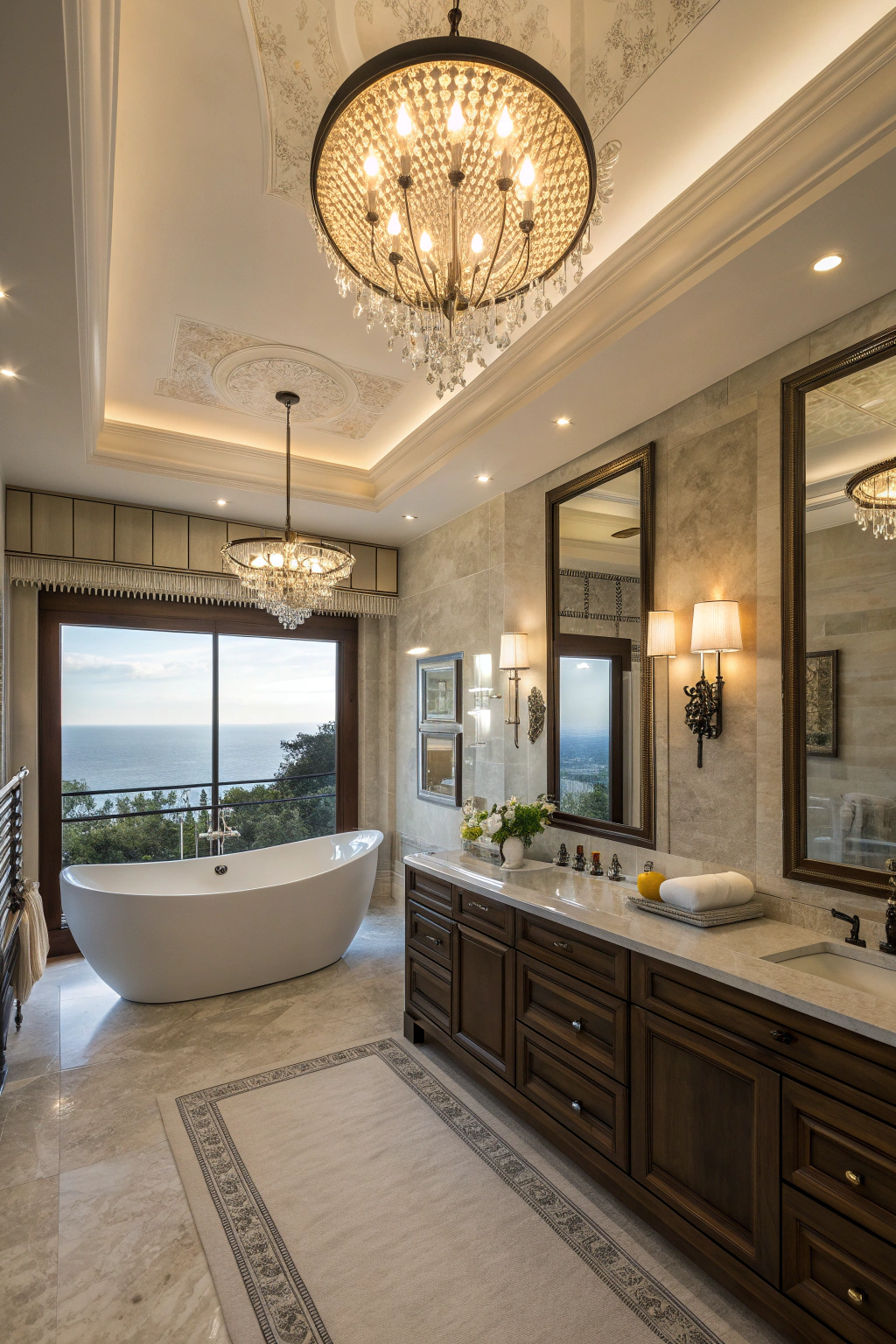 PinTransforming your bathroom's ambiance can be easily achieved with dramatic lighting choices. Consider pendant lights or a bold chandelier that draws attention and creates a focal point. Use dimmers to adjust the atmosphere, allowing for relaxation or energy. Layer your lighting with wall sconces and LED strips for added depth, giving your dark bathroom an inviting and sophisticated glow that enhances its overall design.