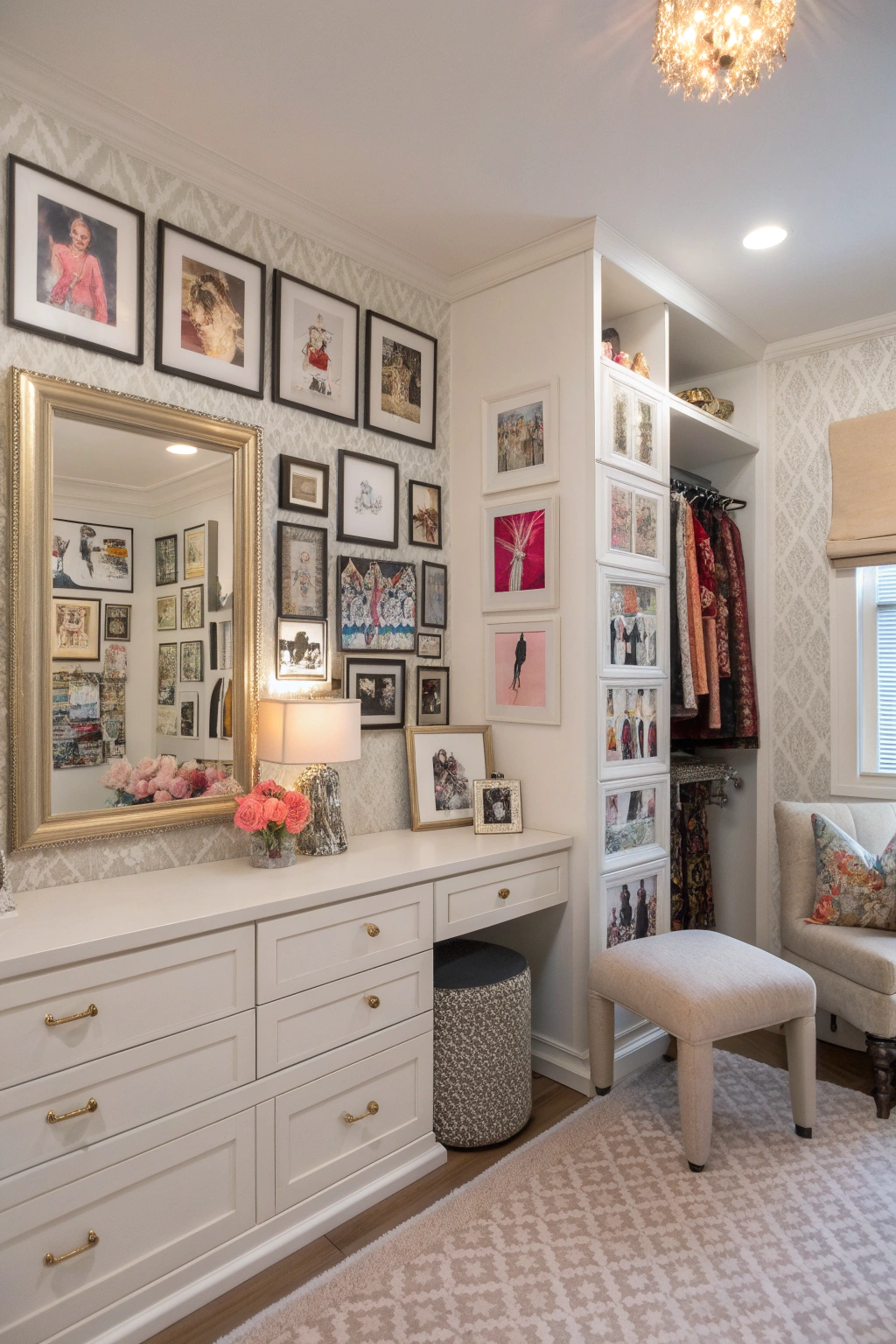 PinA personalized dressing room feels more inviting and reflects your unique style. You can enhance your space by adding personal touches and art that inspire you. Consider incorporating these elements: