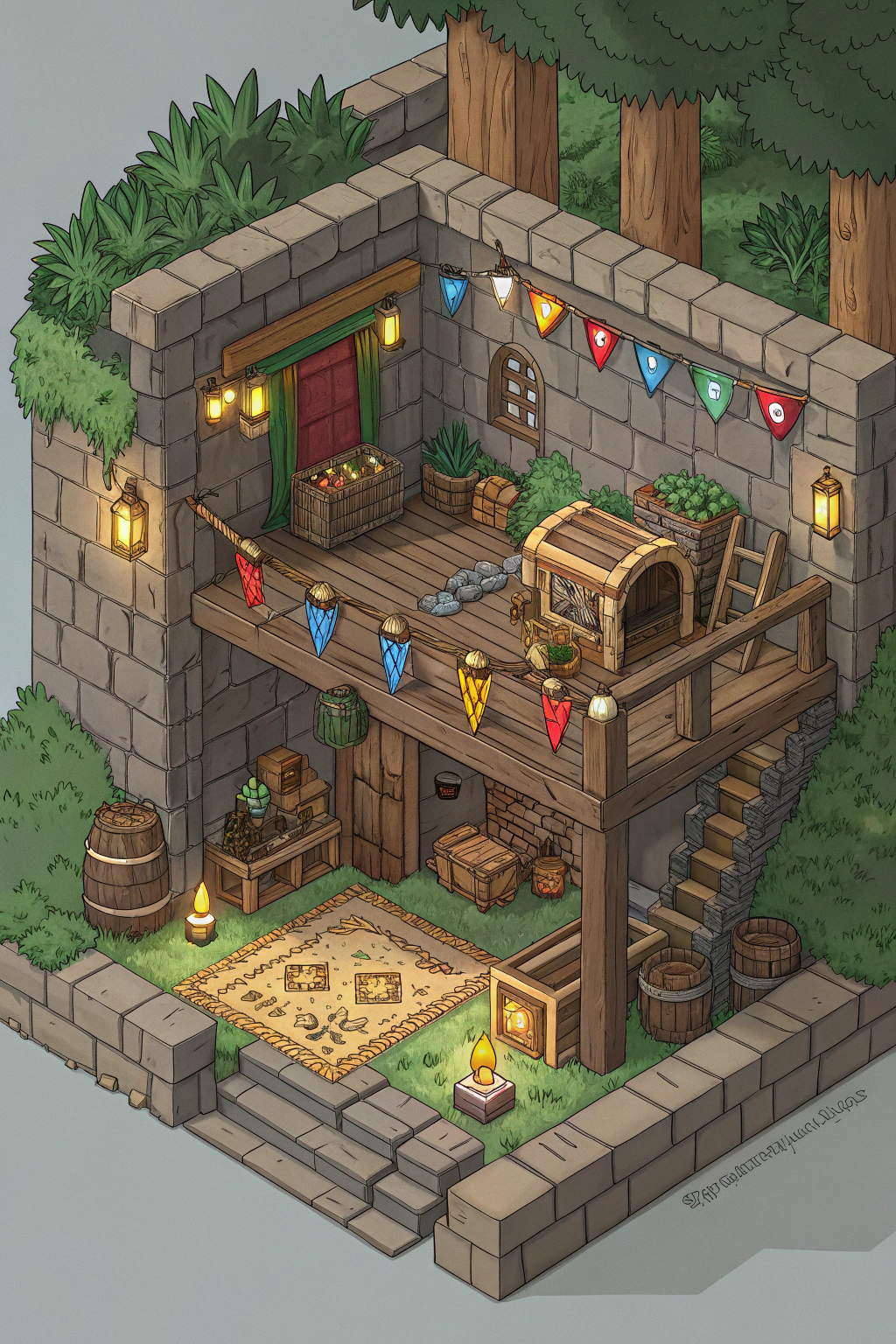 PinAn Adventure Explorer Den can serve as your ultimate base of operations for thrilling quests and expeditions in Minecraft. Design it with maps, compasses, and treasure chests to store your findings. Use a mix of natural materials like wood and stone, incorporating hidden nooks for storage. Bright torches and banners can enhance the adventurous vibe, making it a perfect retreat after a long day of exploration.