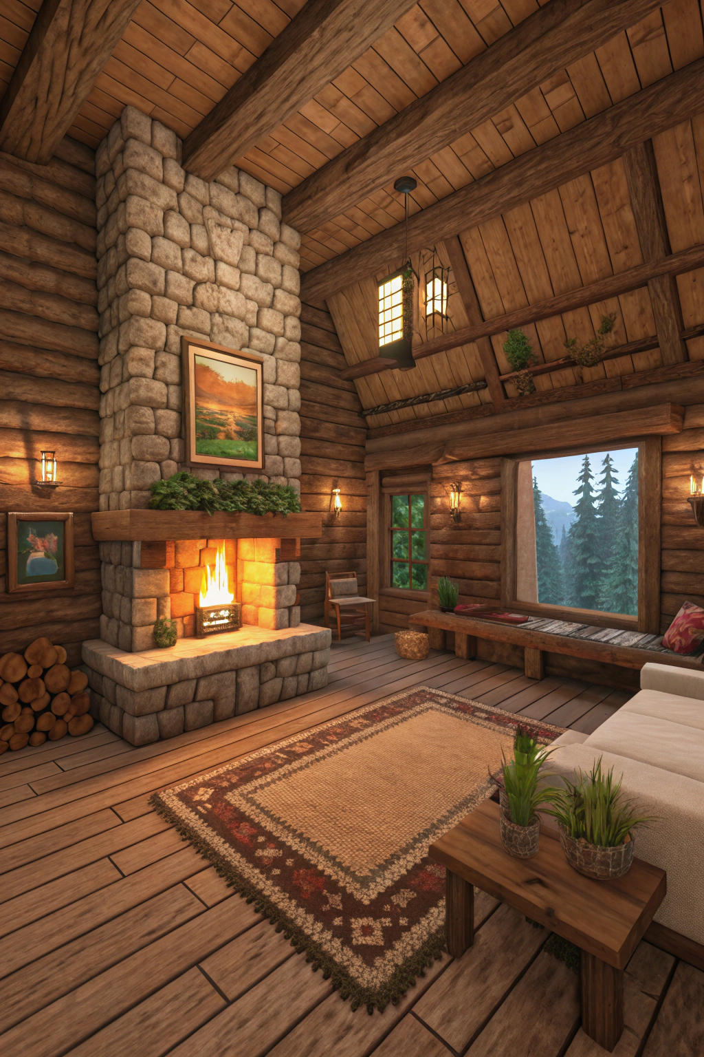 PinFor a cozy cabin retreat in Minecraft, think warm, inviting textures and earthy tones. Use wooden planks, stone bricks, and wool for bedding. Incorporate a fireplace for warmth and soft lighting. Add plush rugs and nature-inspired decor, like flower pots and paintings of landscapes. Don't forget cozy seating, such as benches or chairs, to create a welcoming atmosphere where you can relax and unwind.