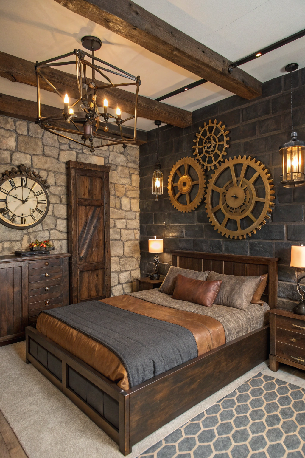 PinHow can you transform your Minecraft bedroom into a world of gears and steam? Start by incorporating brass blocks and cogwheel designs to create a mechanical vibe. Use dark wood and stone for walls, and add vintage lamps for lighting. Don't forget to place an intricate clock or two on your shelves. Finally, finish with leather furniture to complete your steampunk sanctuary.