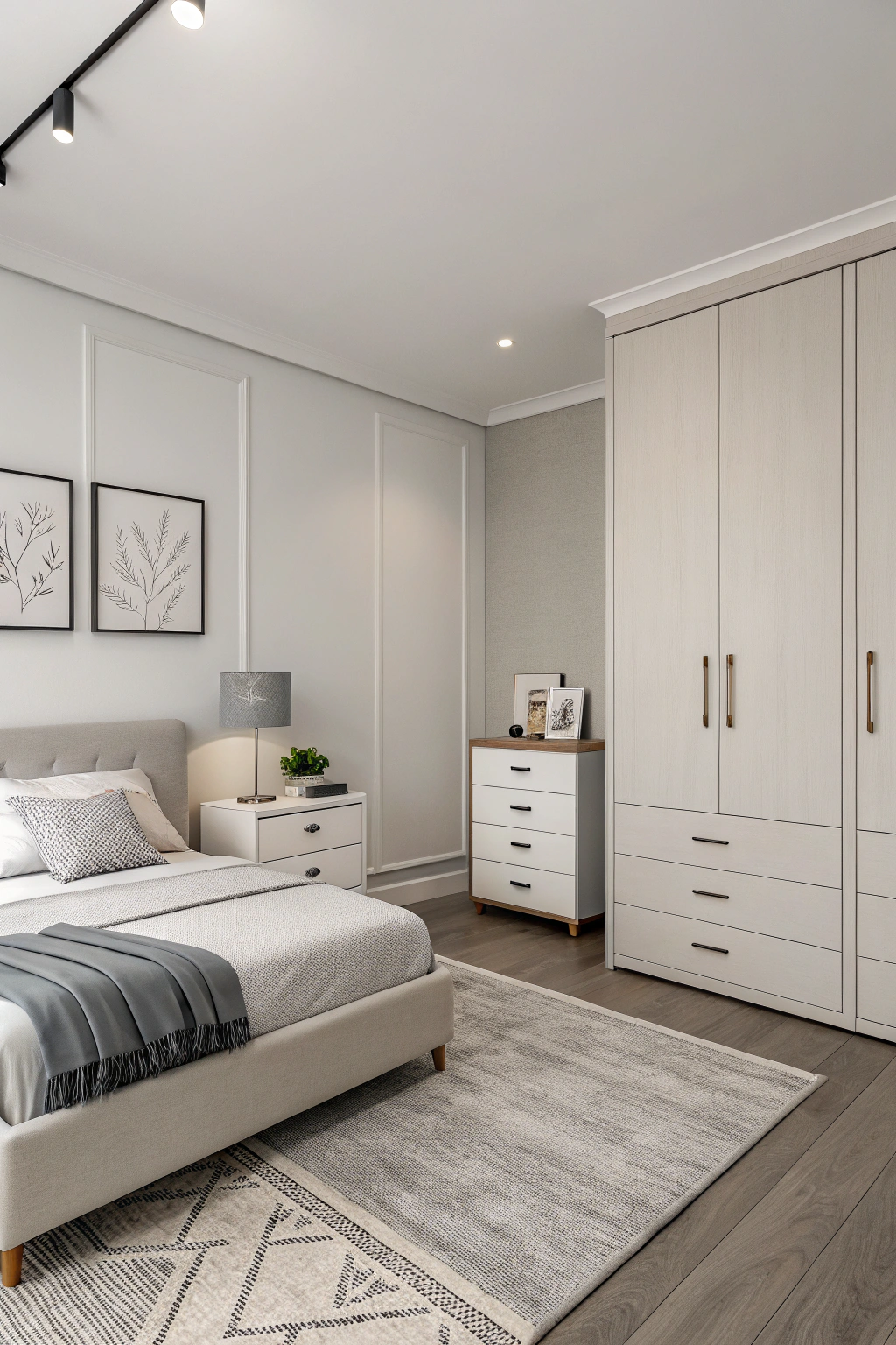 PinIncorporating area rugs can enhance the minimalist decor of your small bedroom while adding warmth and texture. Choose a rug that complements your furnishings and defines the space. Placing a rug under your bed or seating area creates a cozy feel, making the room seem more inviting. Remember to opt for rugs that are easy to clean, ensuring your space stays fresh and tidy.