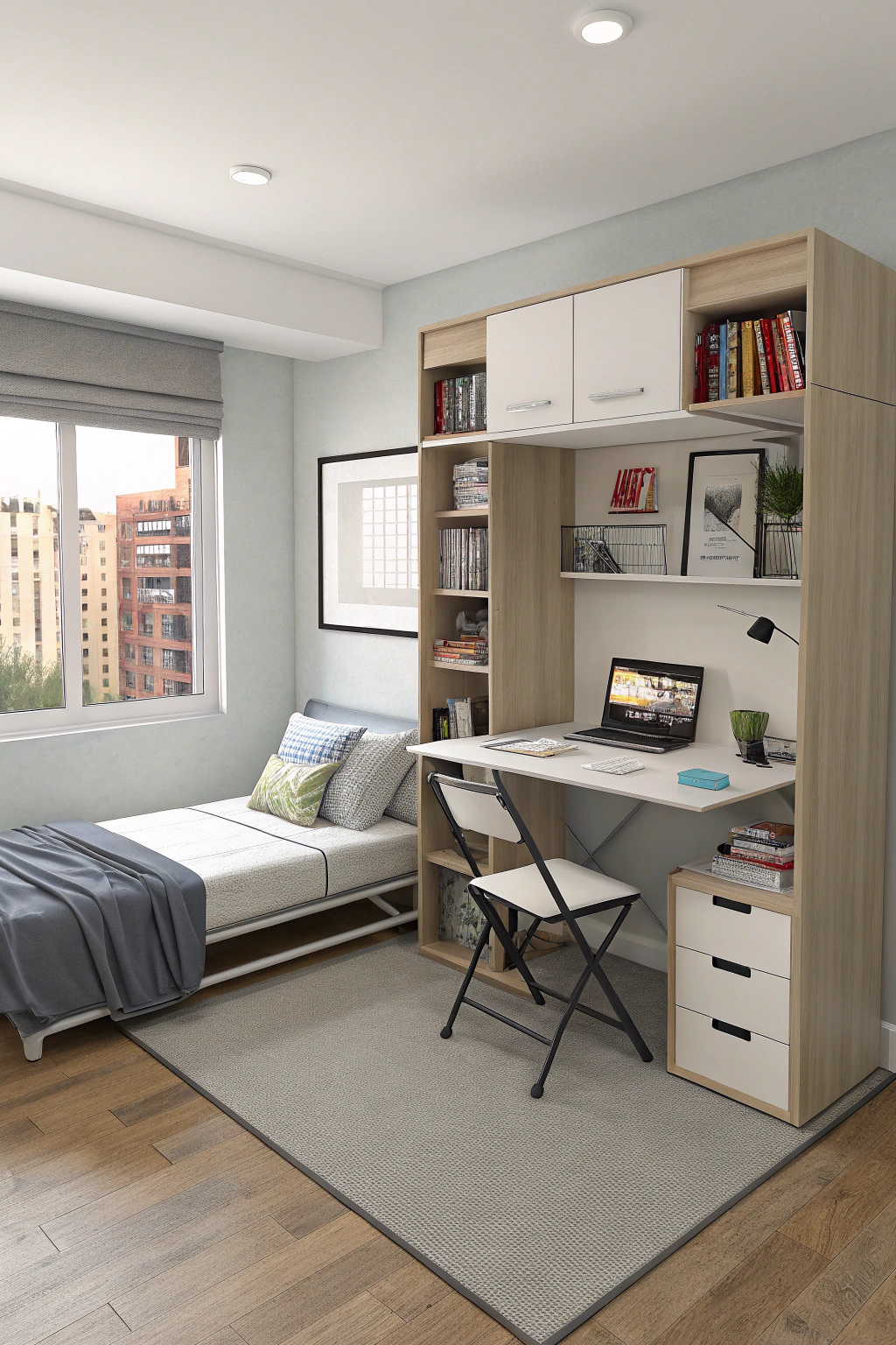 - Murphy bed - Maximizes floor space without sacrificing comfort.